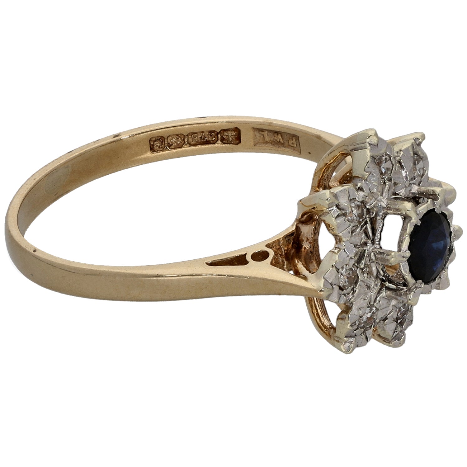 9ct Gold Sapphire & 0.04ct Diamond Dress/Cocktail Ring Size L
