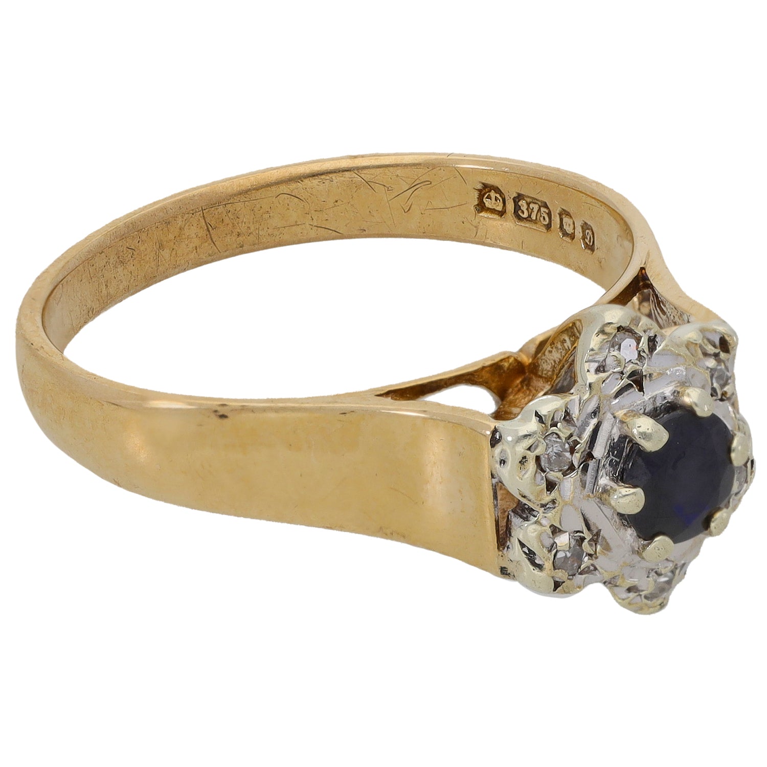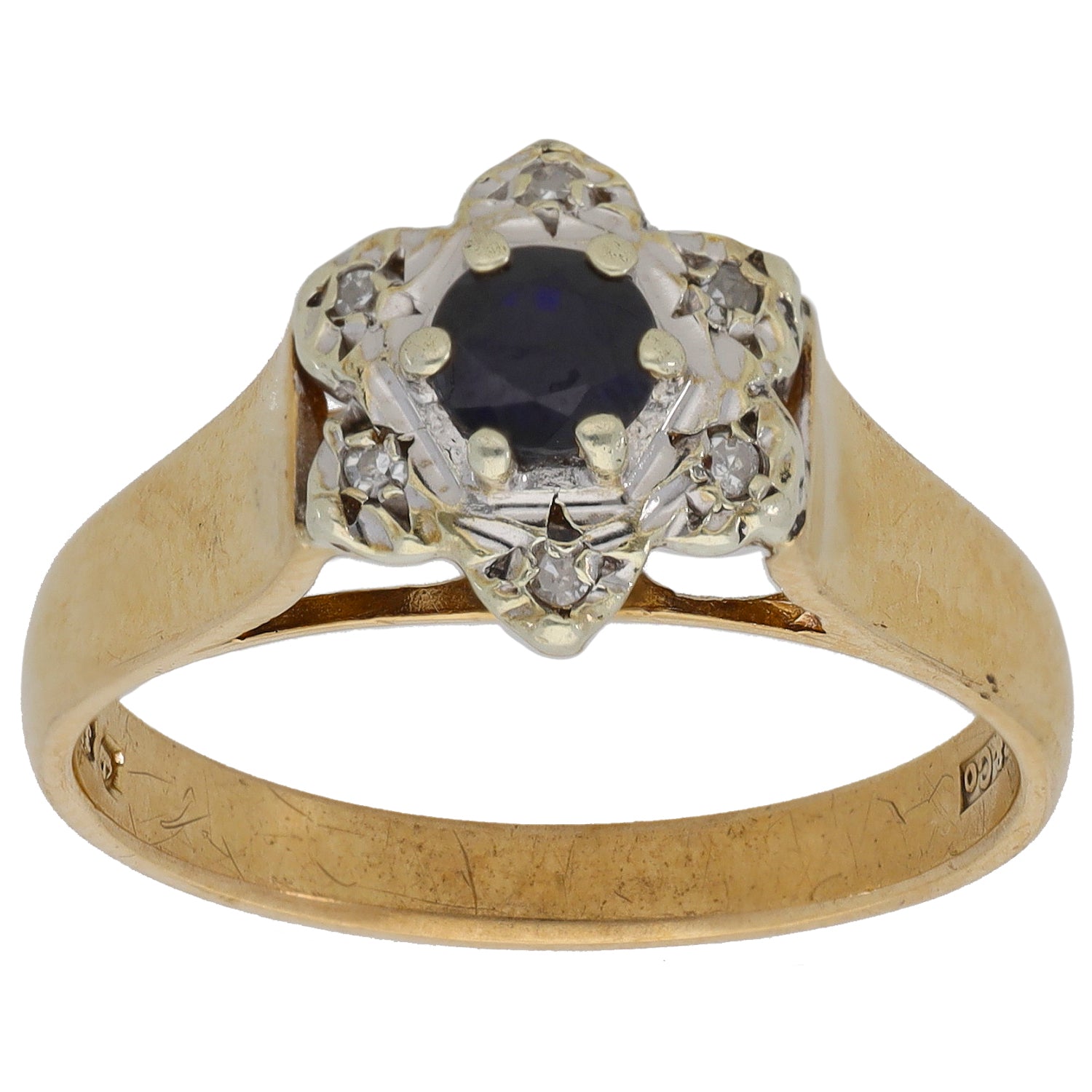 9ct Gold Sapphire & 0.03ct Diamond Cluster Ring Size N