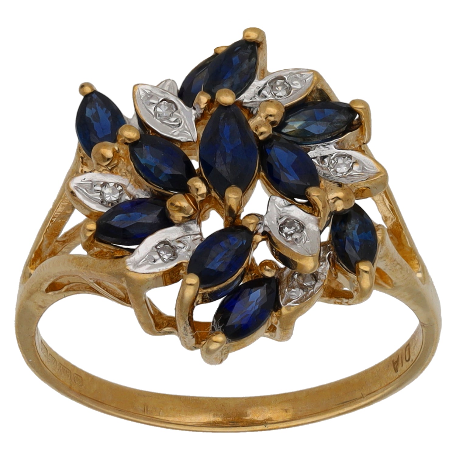 9ct Gold Sapphire & 0.04ct Diamond Dress/Cocktail Ring Size N