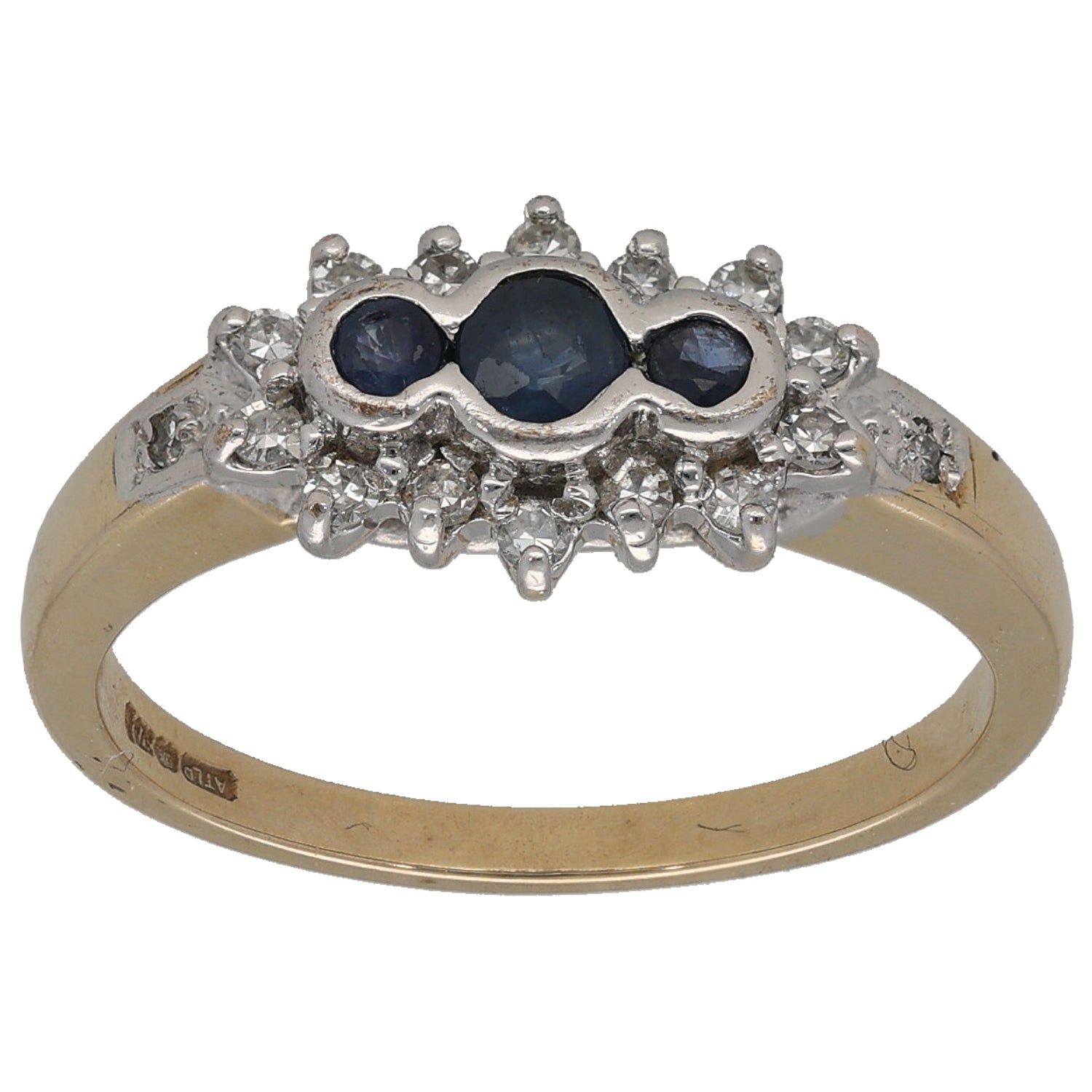 9ct Gold Sapphire & 0.16ct Diamond Dress/Cocktail Ring Size O