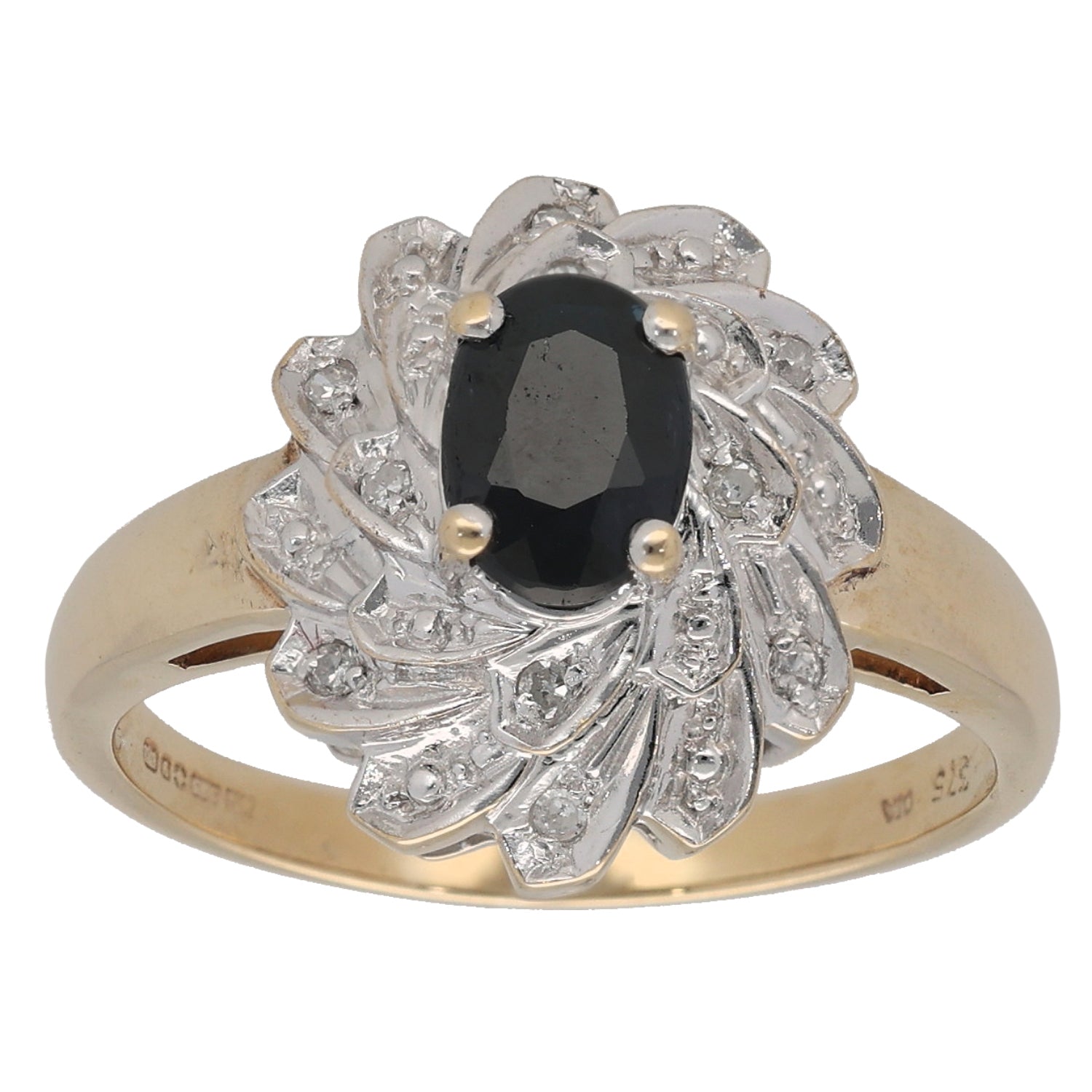 9ct Gold Sapphire & 0.05ct Diamond Dress/Cocktail Ring Size P