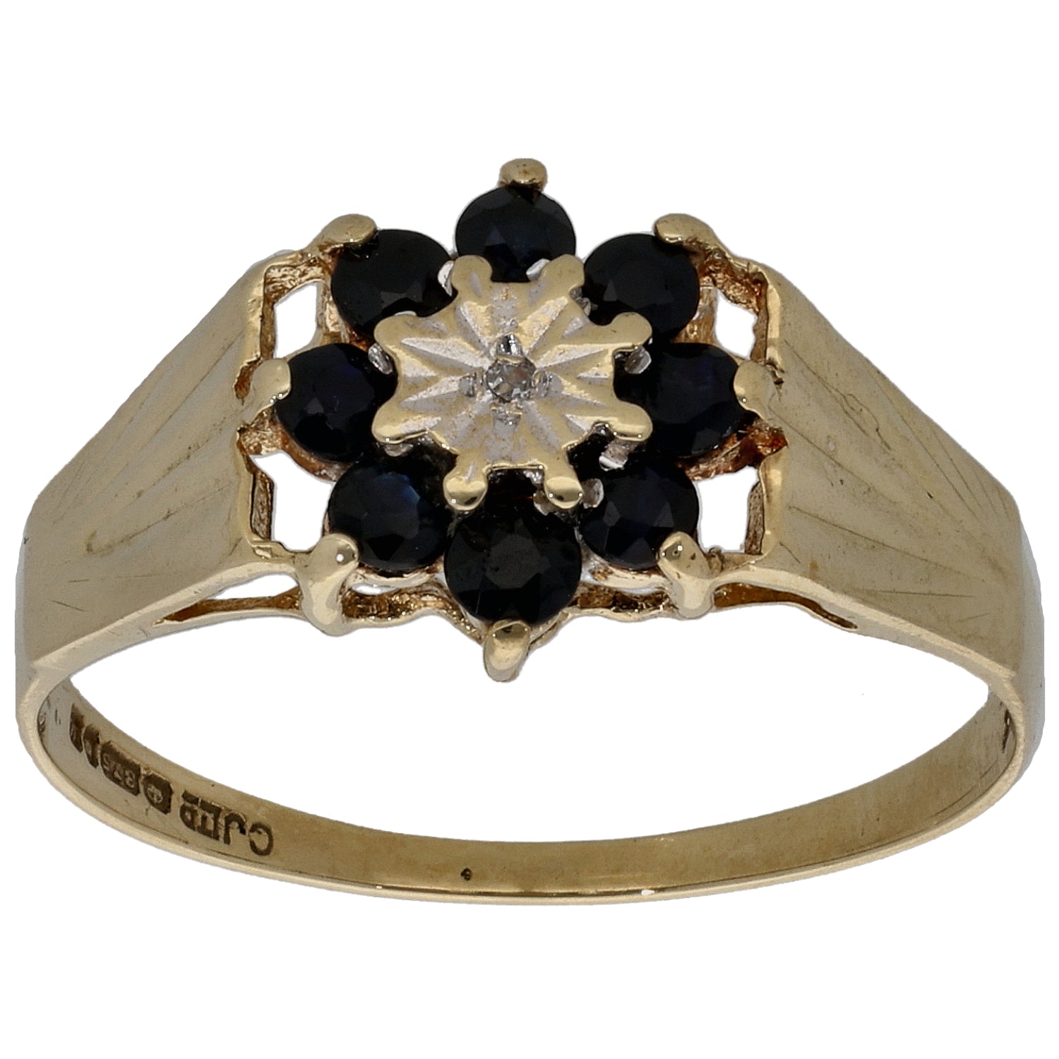 9ct Gold Sapphire & 0.005ct Diamond Dress/Cocktail Ring Size Q