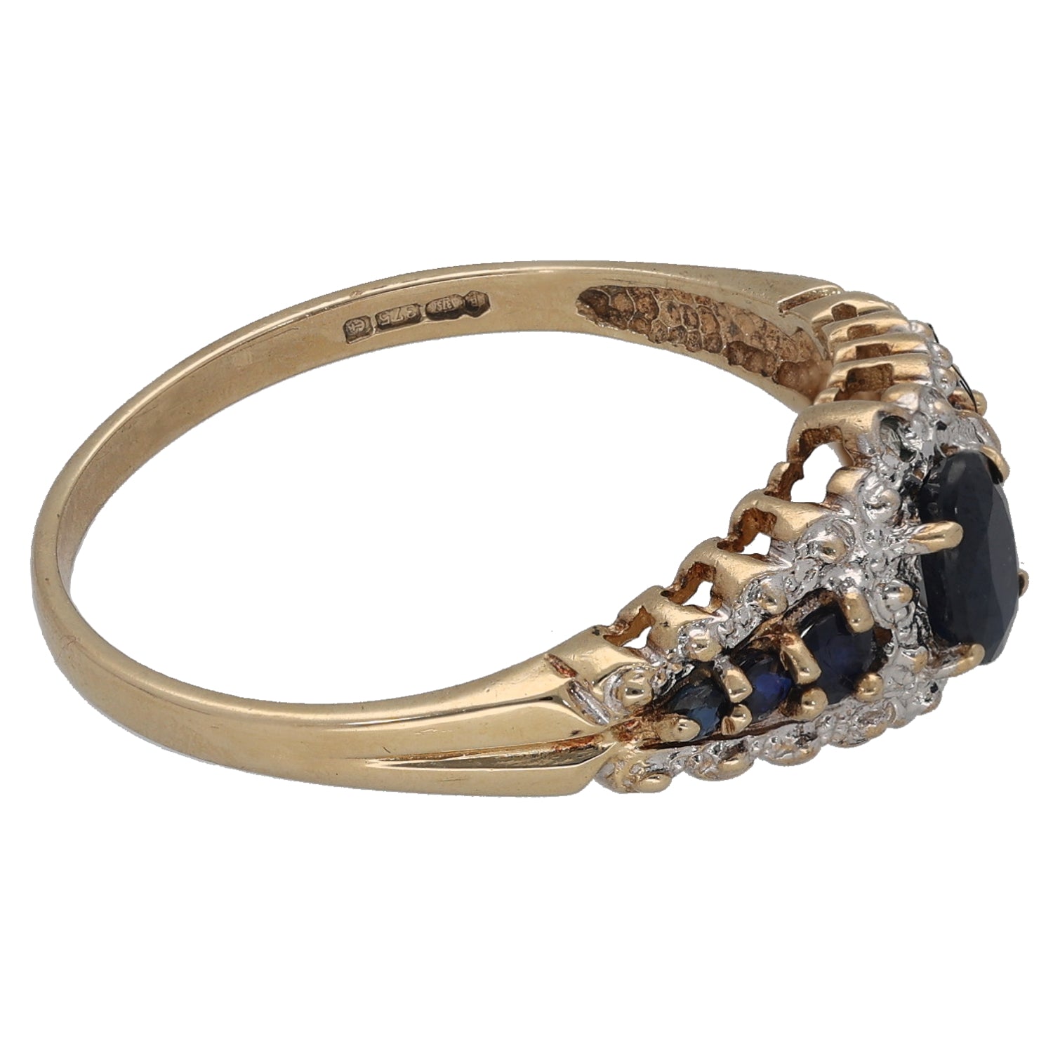 9ct Gold Sapphire & 0.01ct Diamond Dress/Cocktail Ring Size W