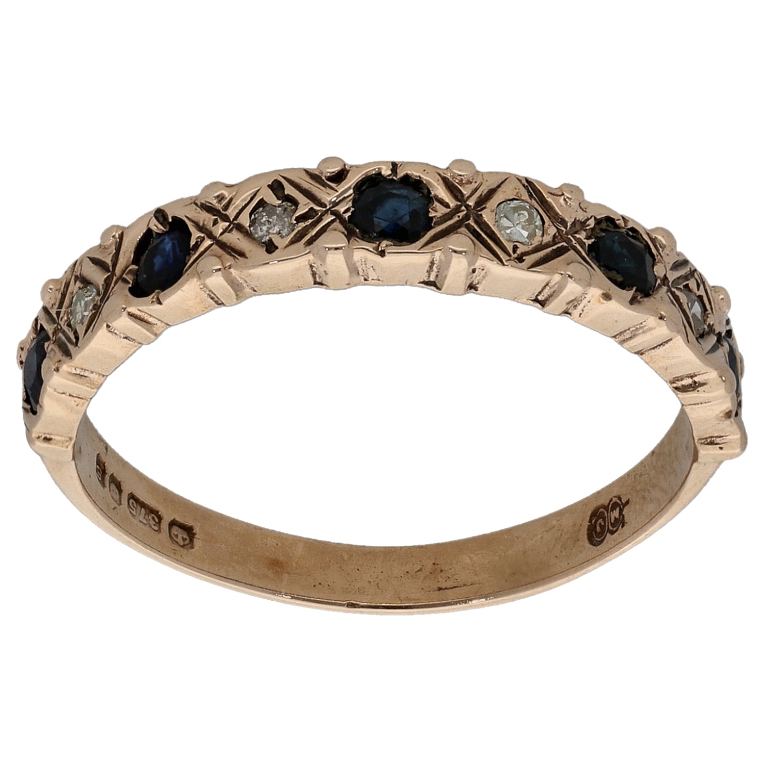 9ct Gold Sapphire & 0.04ct Diamond Half Eternity Ring Size N