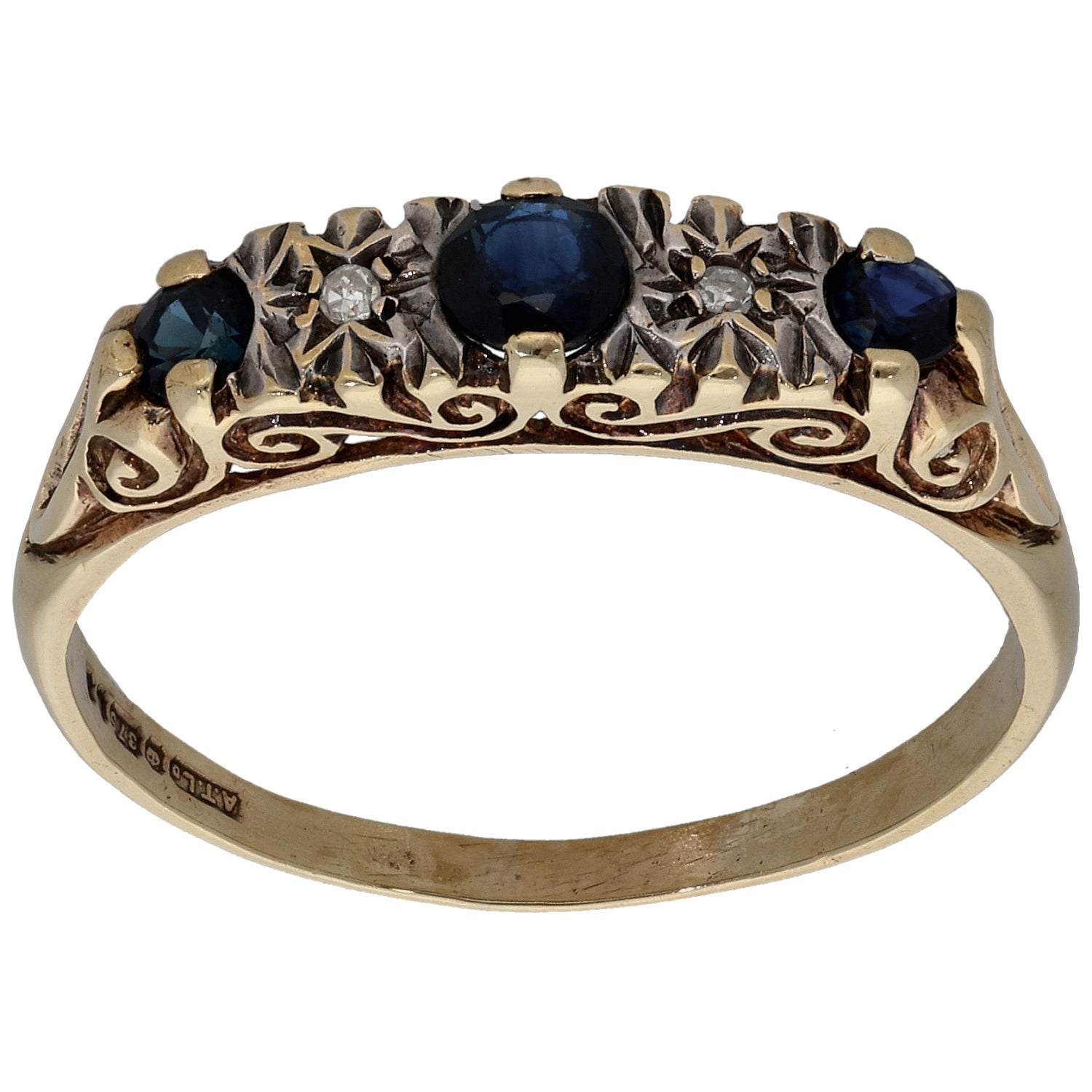 9ct Gold Sapphire & 0.02ct Diamond Half Eternity Ring Size R