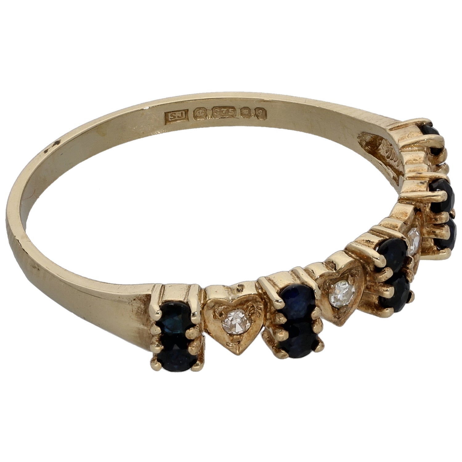 9ct Gold Sapphire & 0.04ct Diamond Half Eternity Ring Size T