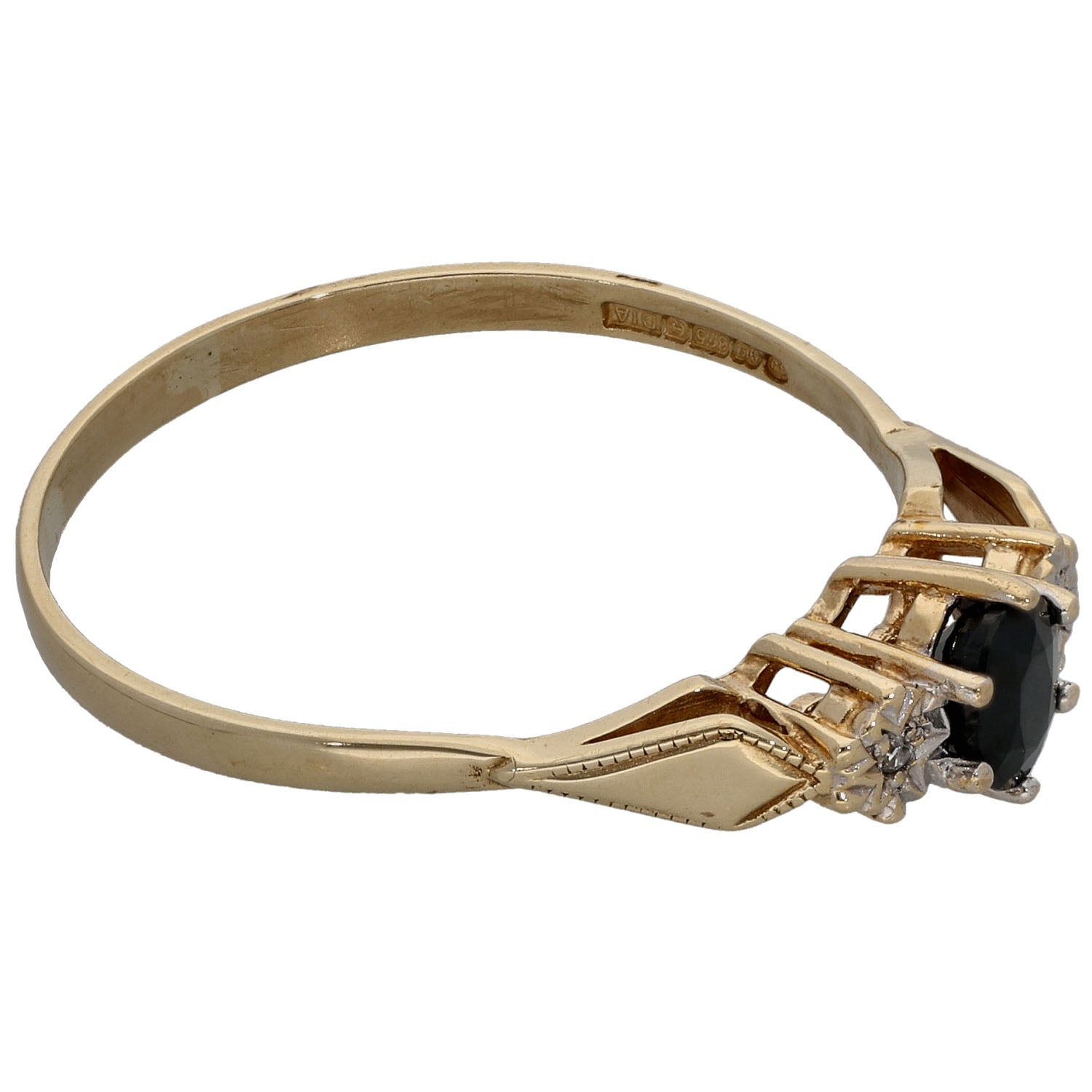 9ct Gold Sapphire & 0.01ct Diamond Three Stone Ring Size U