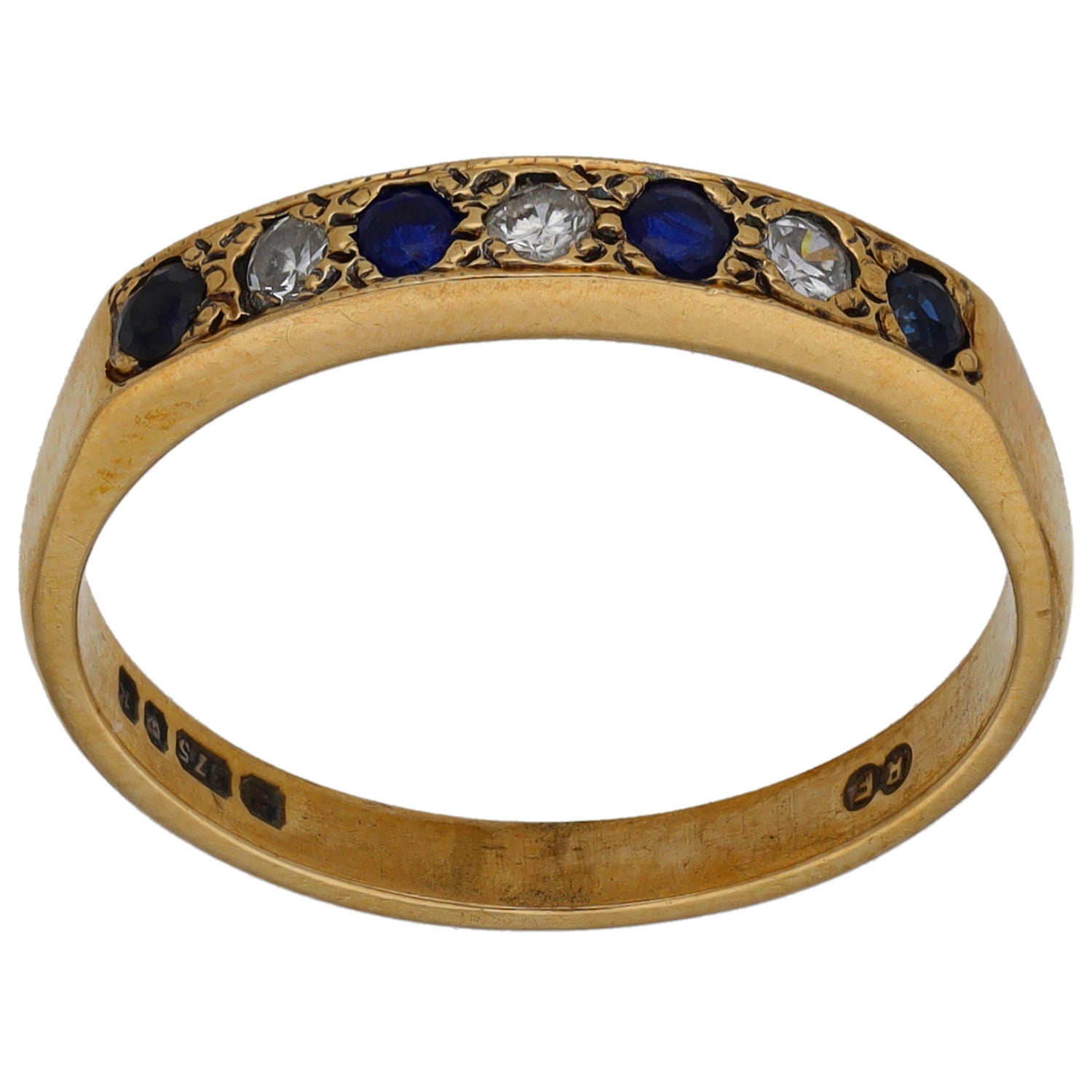 9ct Gold Sapphire & 0.09ct Diamond Half Eternity Ring Size M
