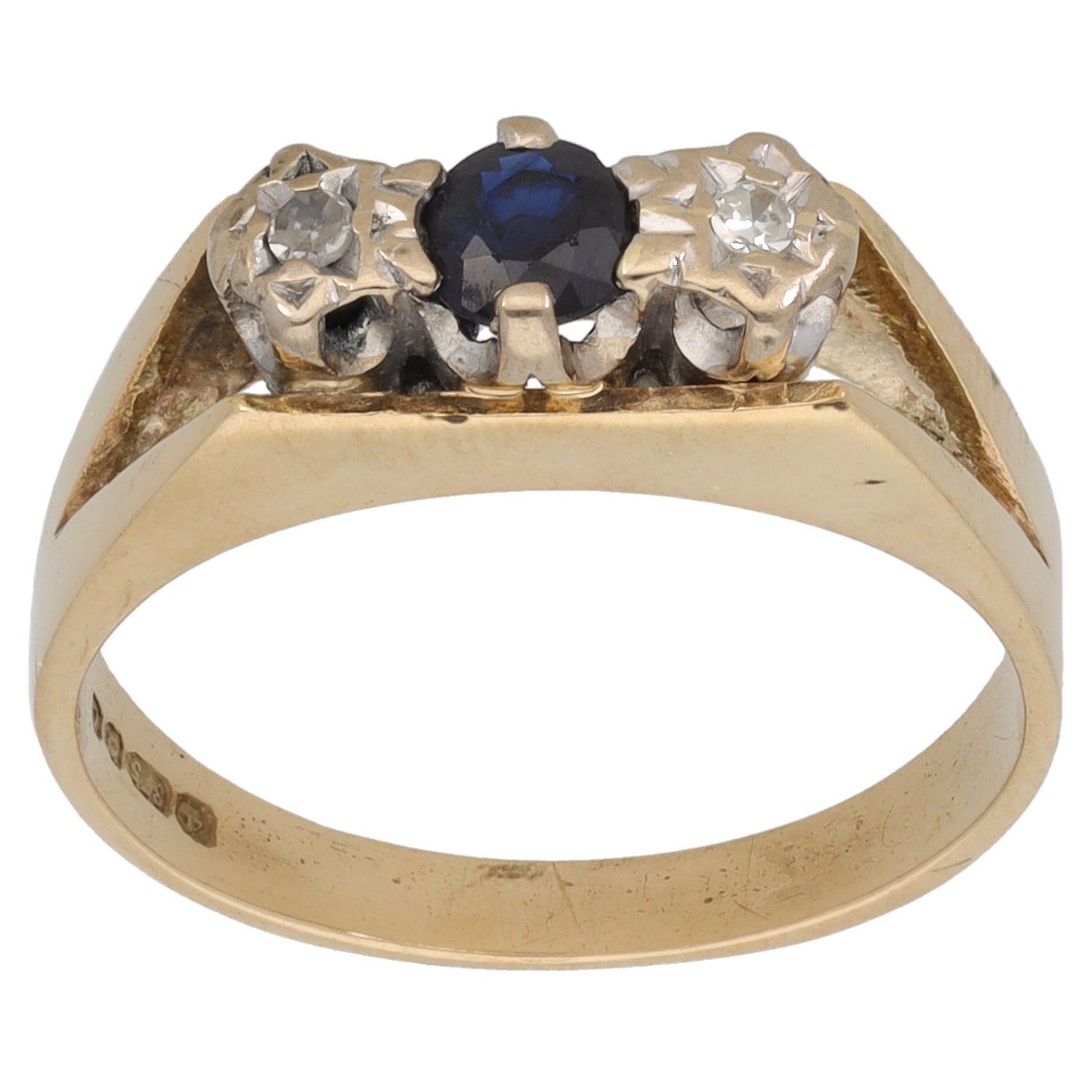 9ct Gold Sapphire & 0.06ct Diamond Trilogy Ring Size O