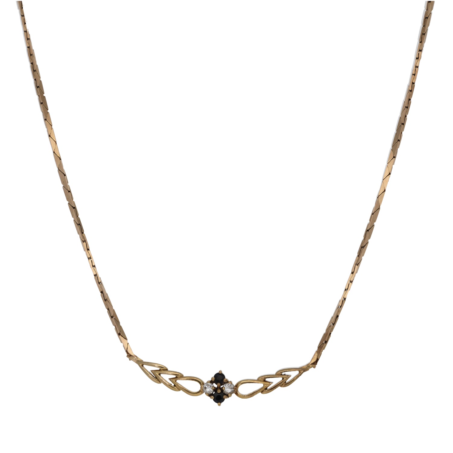 9ct Gold Sapphire & 0.08ct Diamond Fancy Necklace 16"