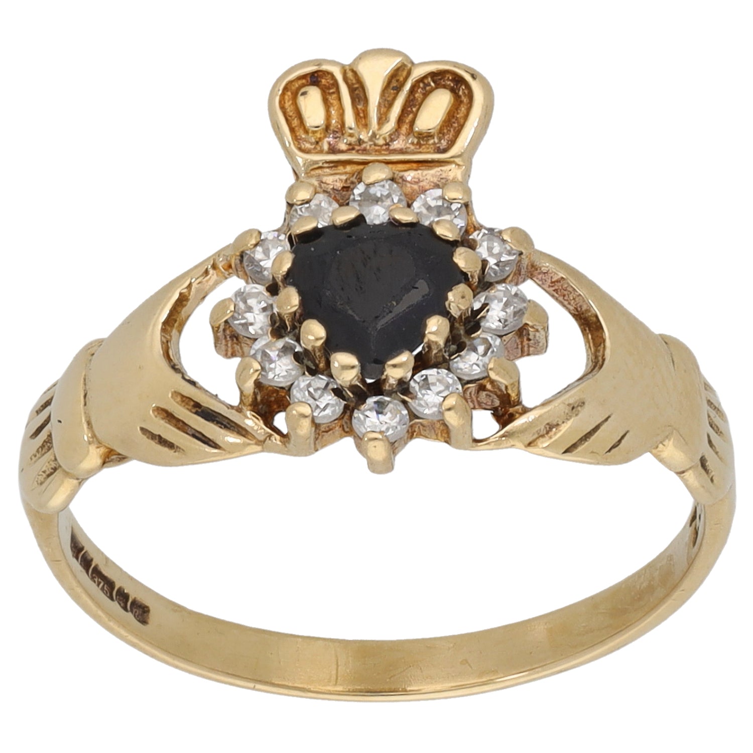 9ct Gold Sapphire & Cubic Zirconia Claddagh Ring Size P