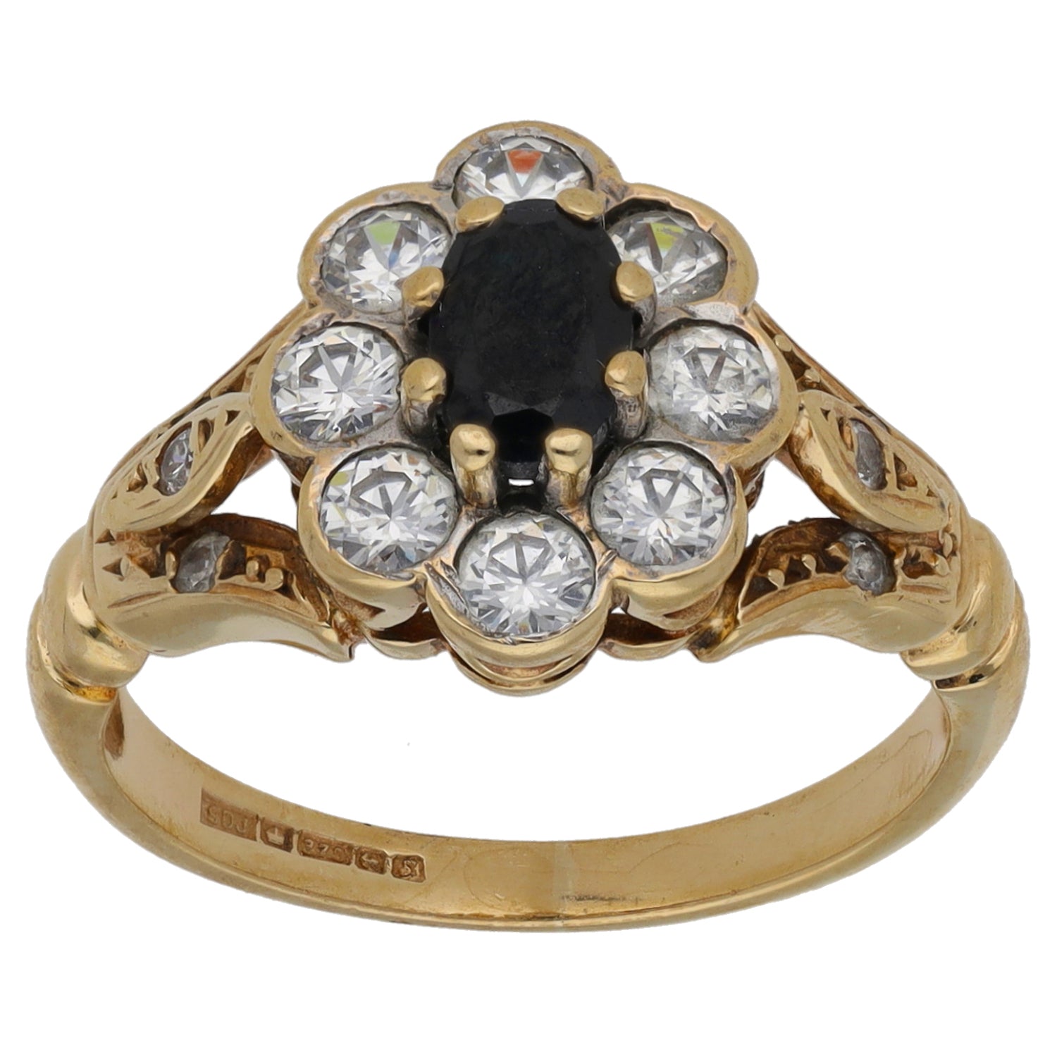 9ct Gold Sapphire & Cubic Zirconia Dress/Cocktail Ring Size M