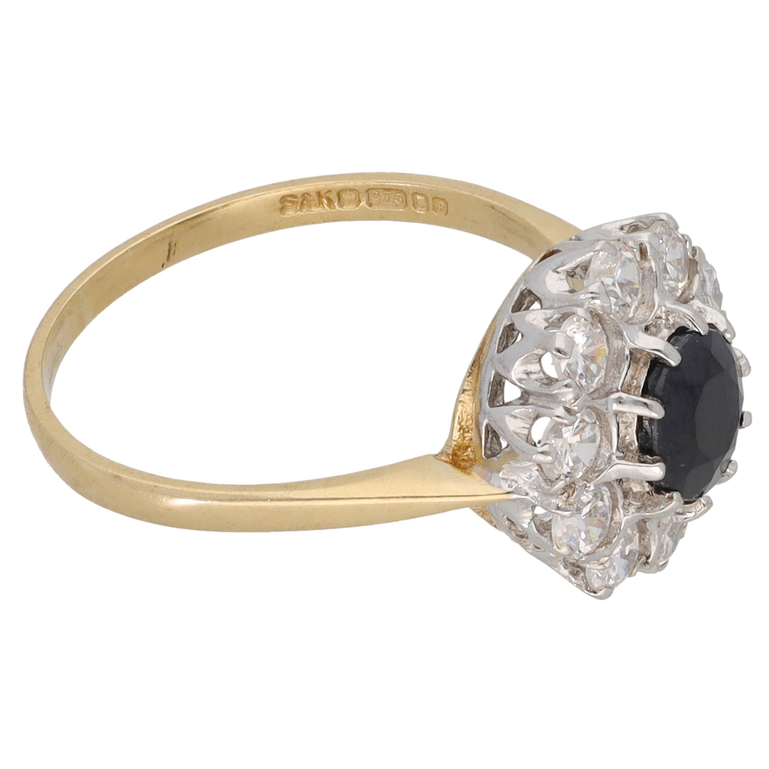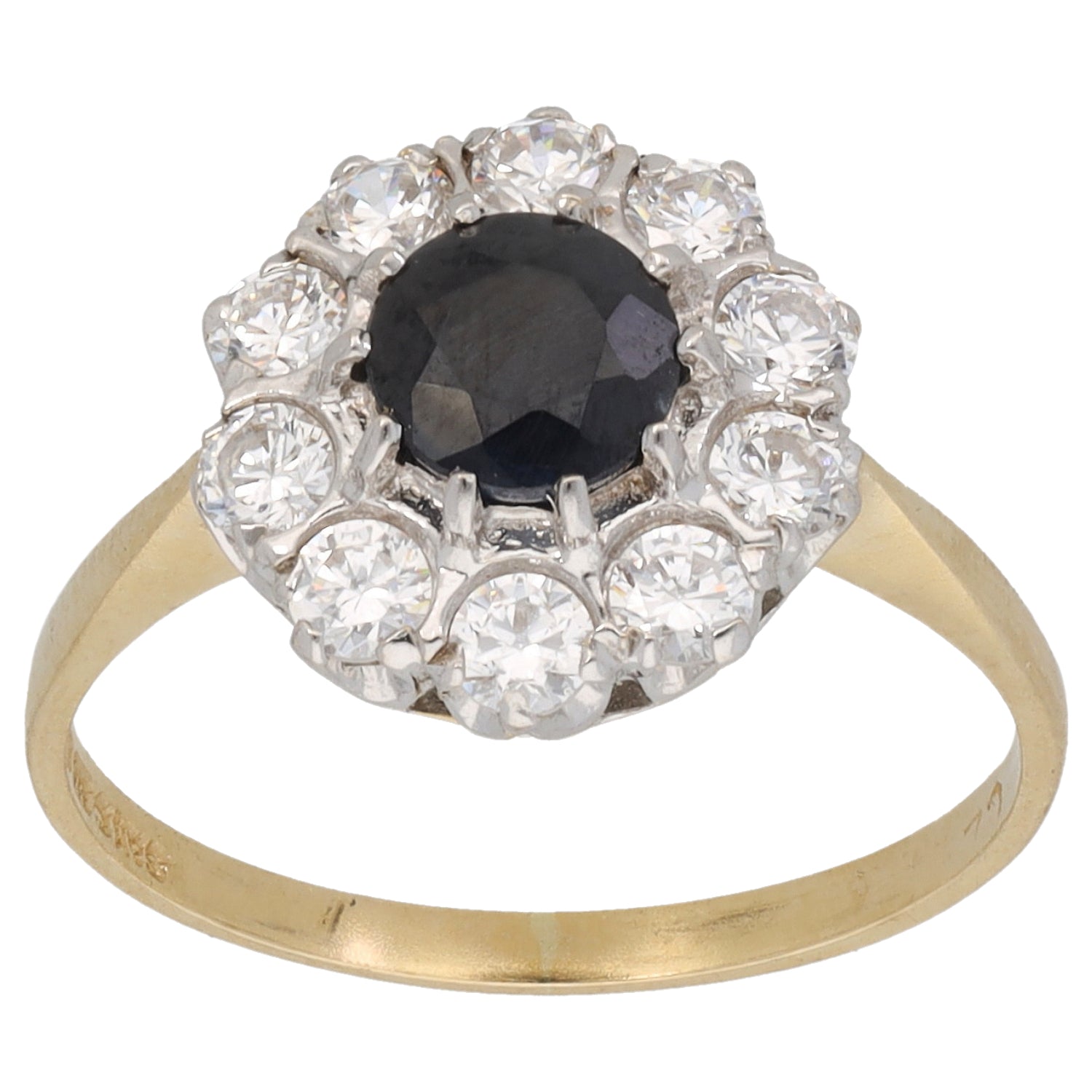 9ct Gold Sapphire & Cubic Zirconia Cluster Ring Size M