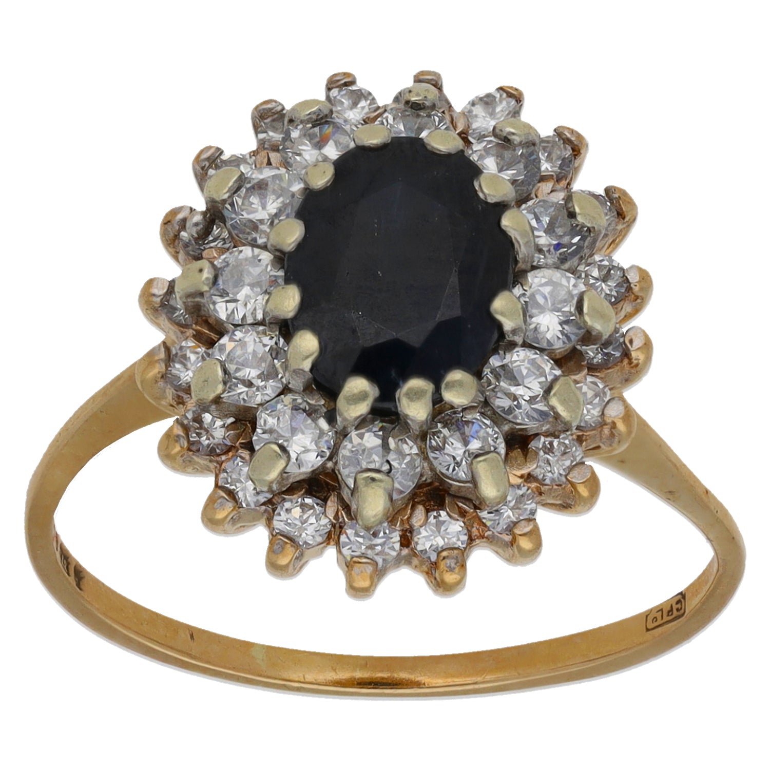 9ct Gold Sapphire & Cubic Zirconia Dress/Cocktail Ring Size P