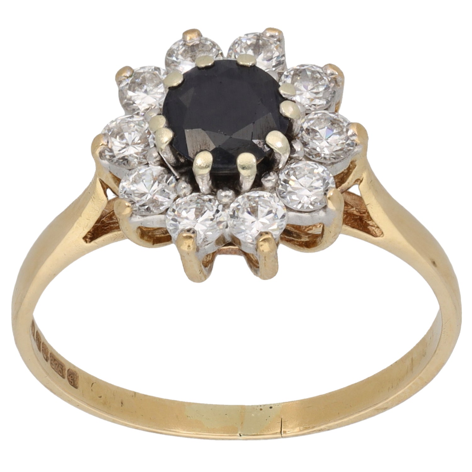 9ct Gold Sapphire & Cubic Zirconia Dress/Cocktail Ring Size P