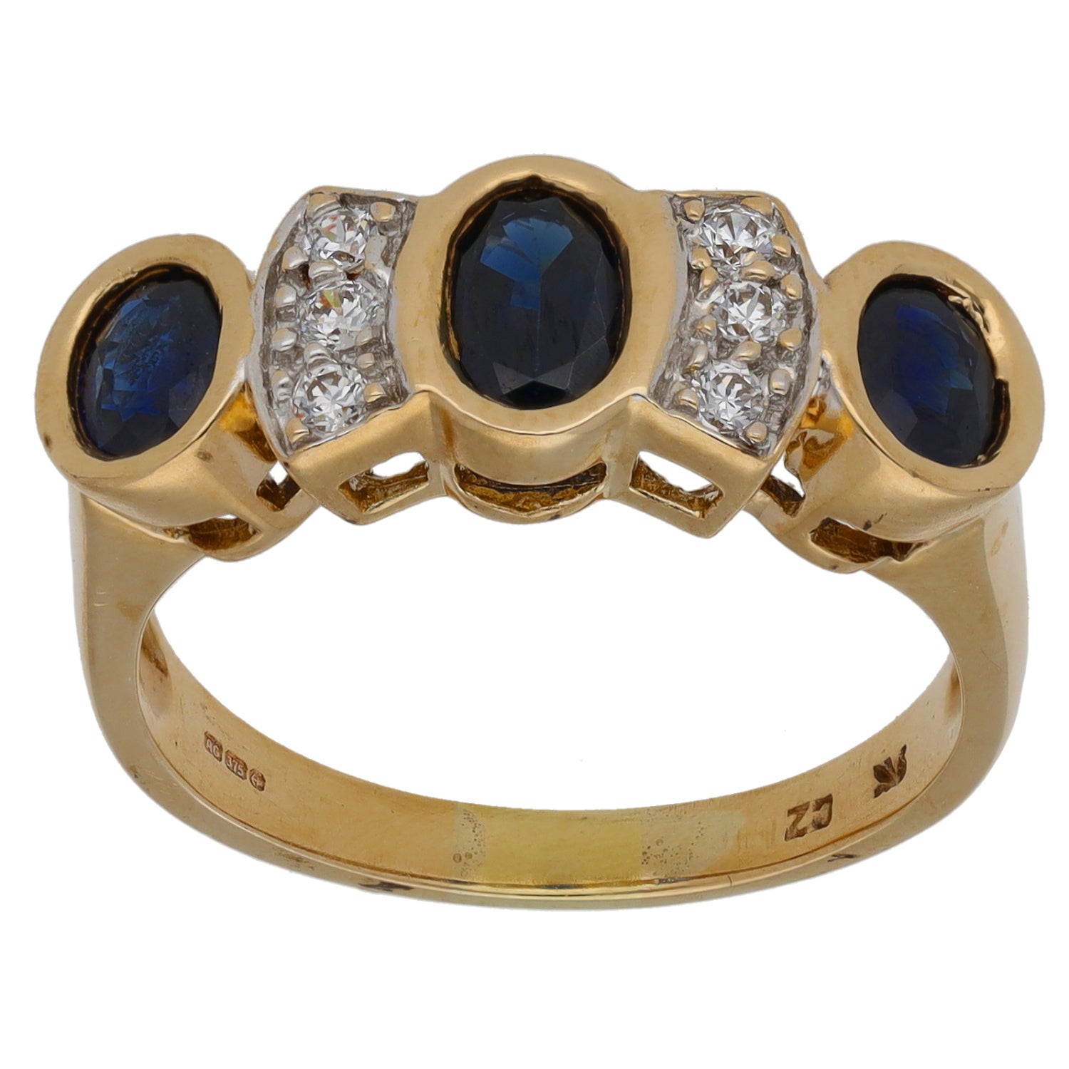 9ct Gold Sapphire & Cubic Zirconia Dress/Cocktail Ring Size Q