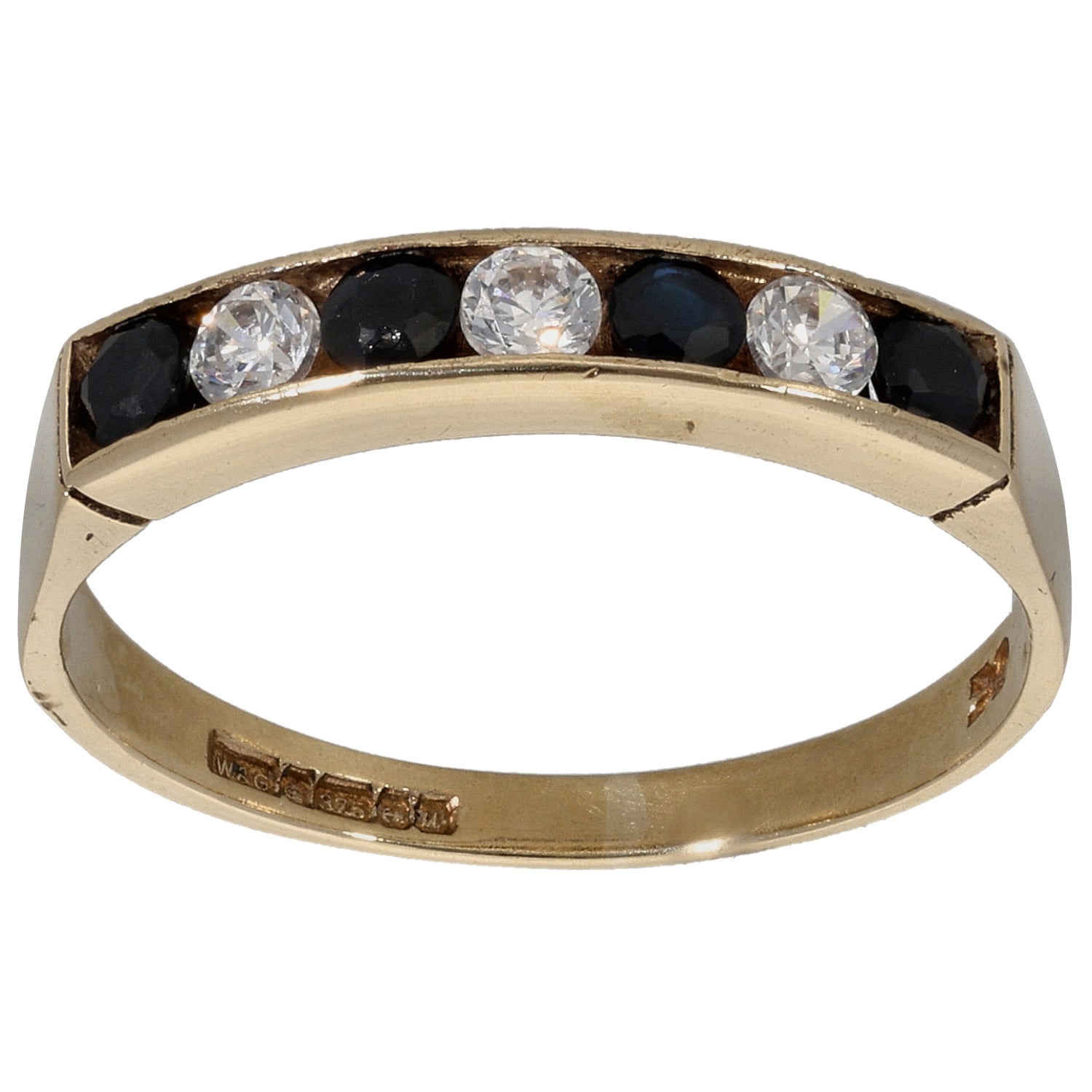 9ct Gold Sapphire & Cubic Zirconia Half Eternity Ring Size M