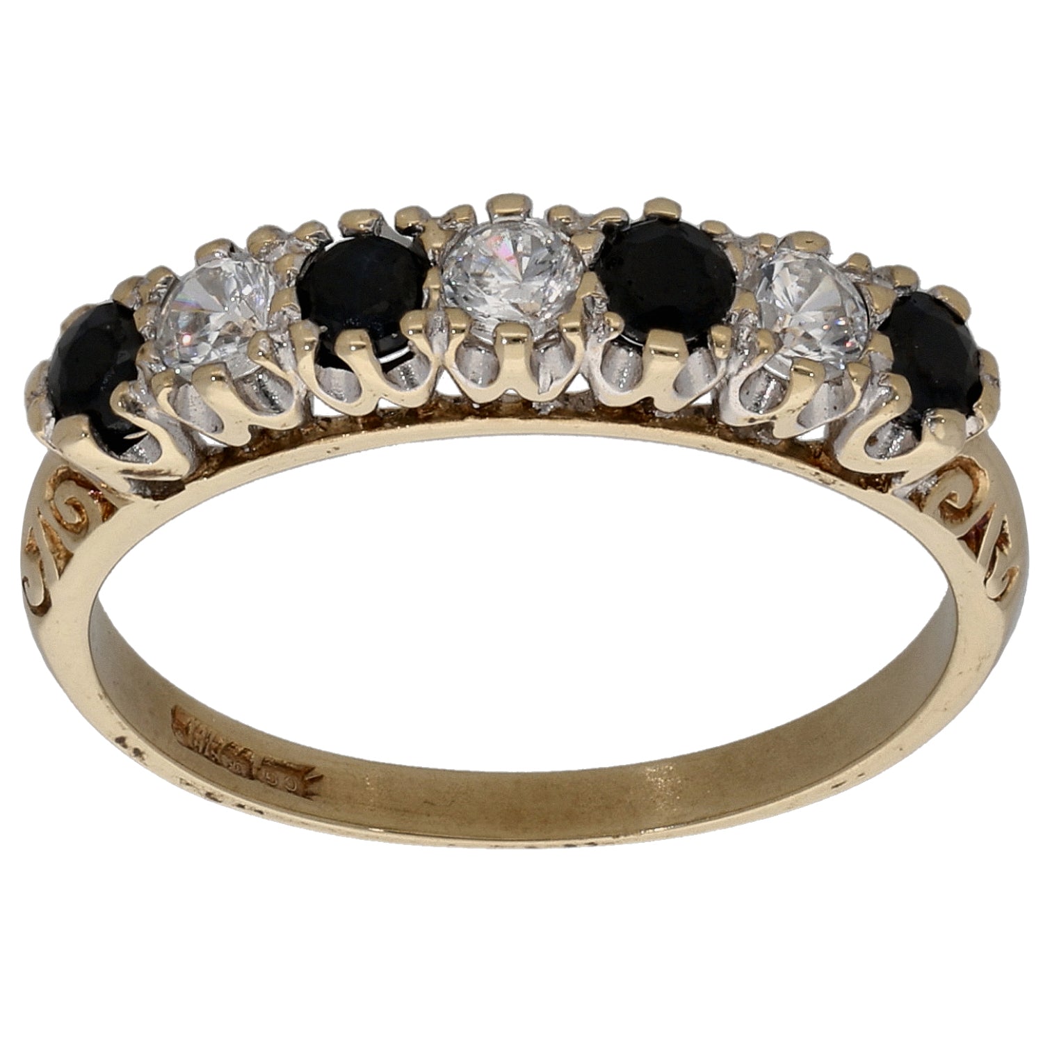 9ct Gold Sapphire & Cubic Zirconia Half Eternity Ring Size N