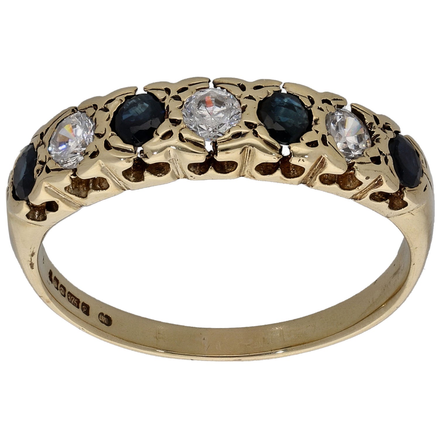 9ct Gold Sapphire & Cubic Zirconia Half Eternity Ring Size Q