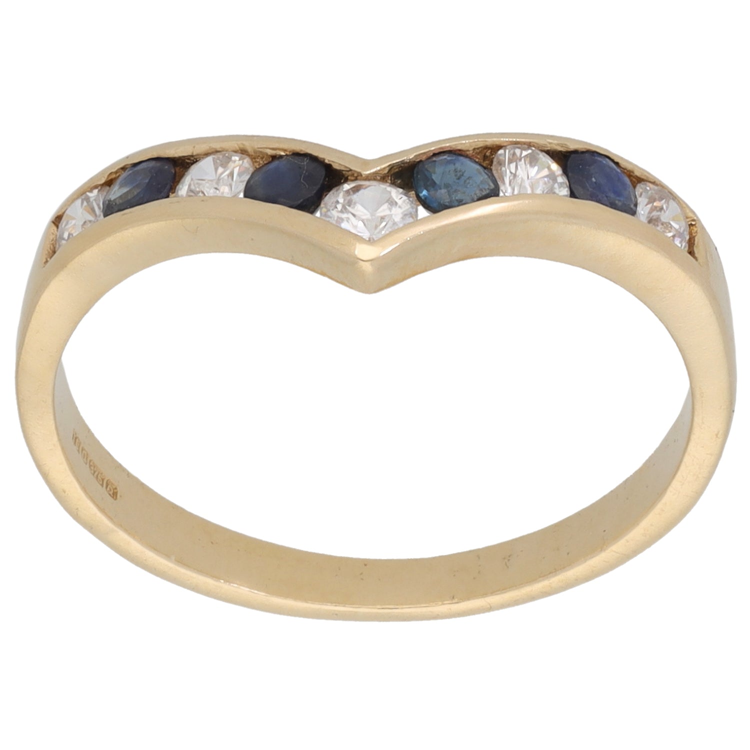 9ct Gold Sapphire & Cubic Zirconia Wishbone Ring Size P