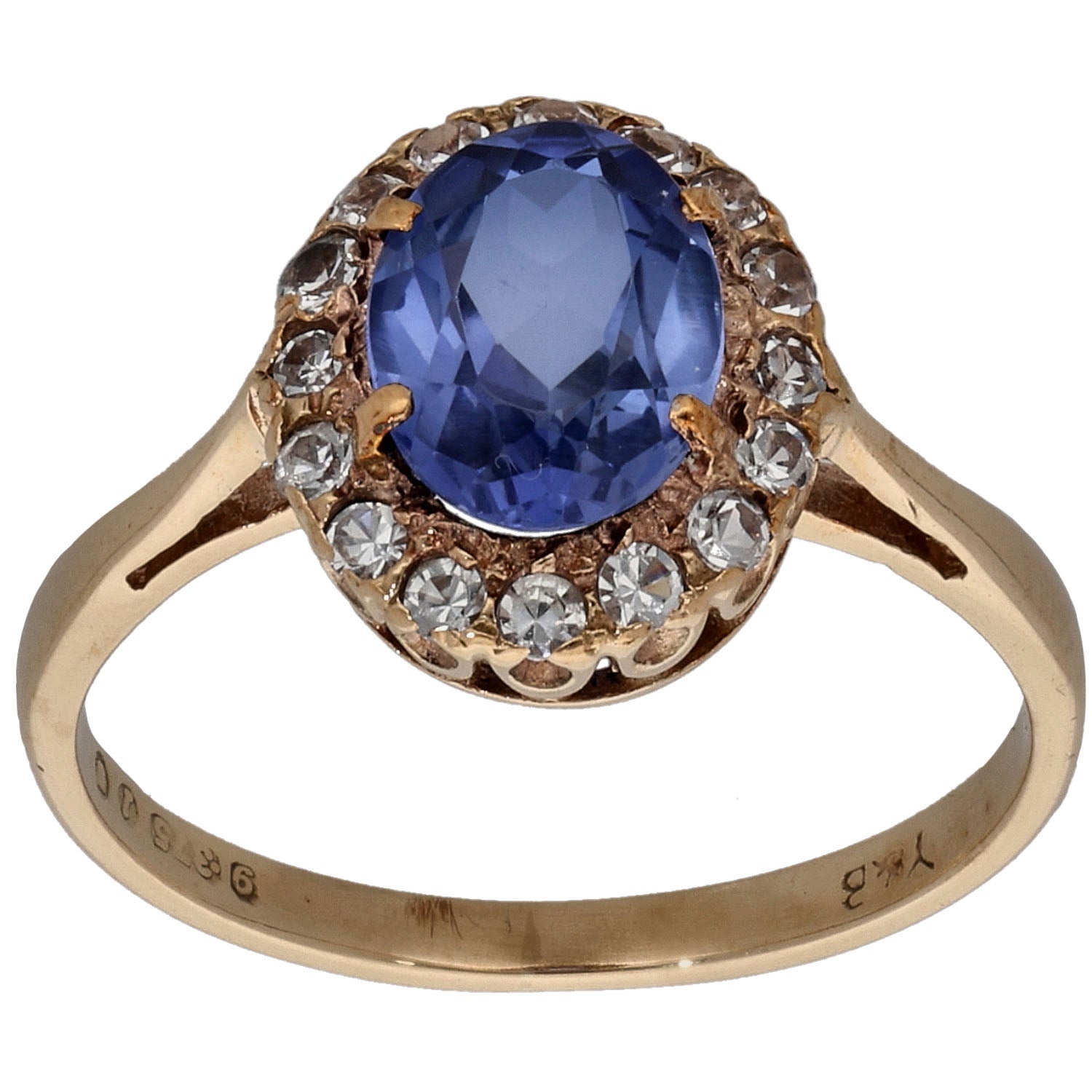 9ct Gold Sapphire & Imitation Gems Dress/Cocktail Ring Size L