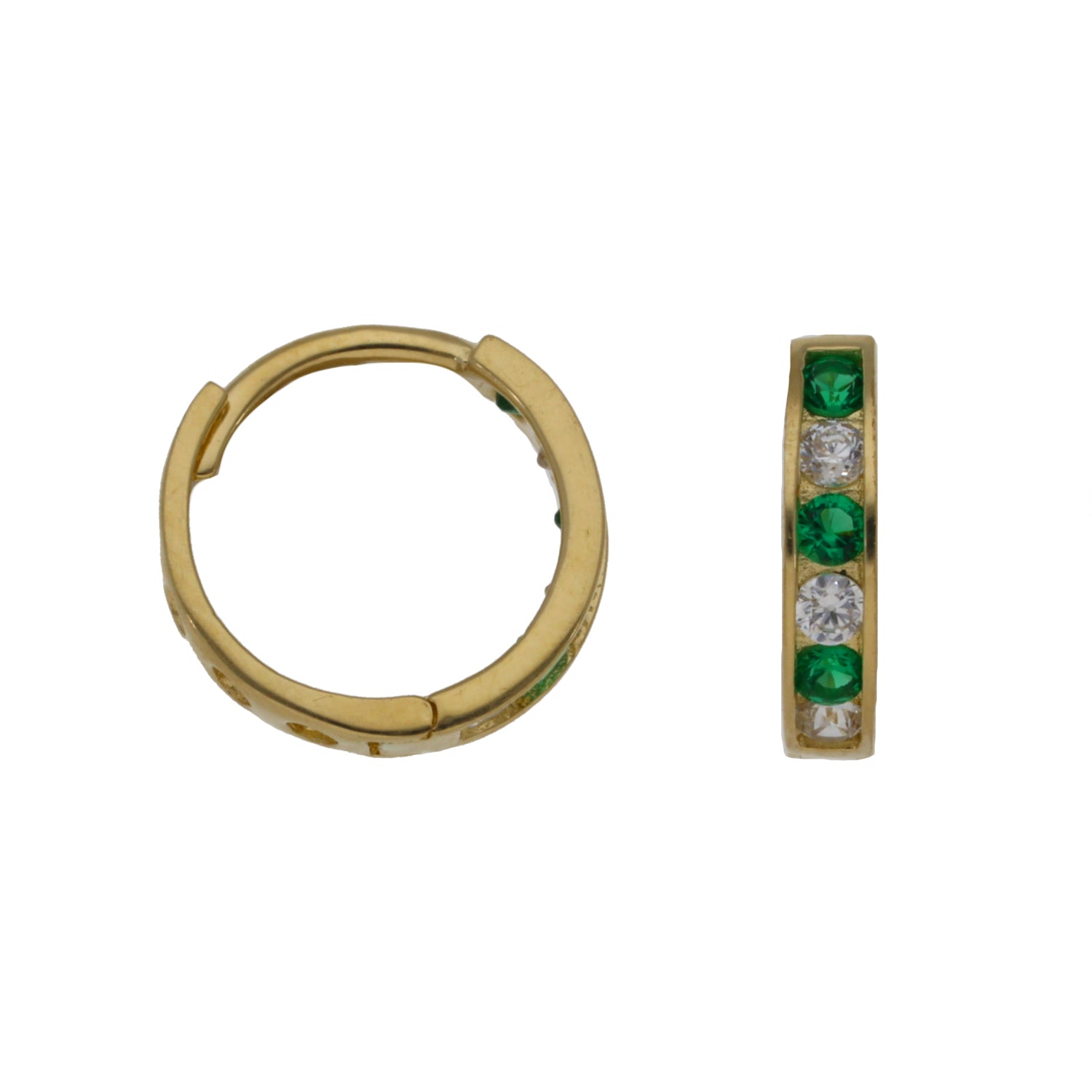 New 9ct Gold Emerald & Cubic Zirconia Small Hoop Earrings