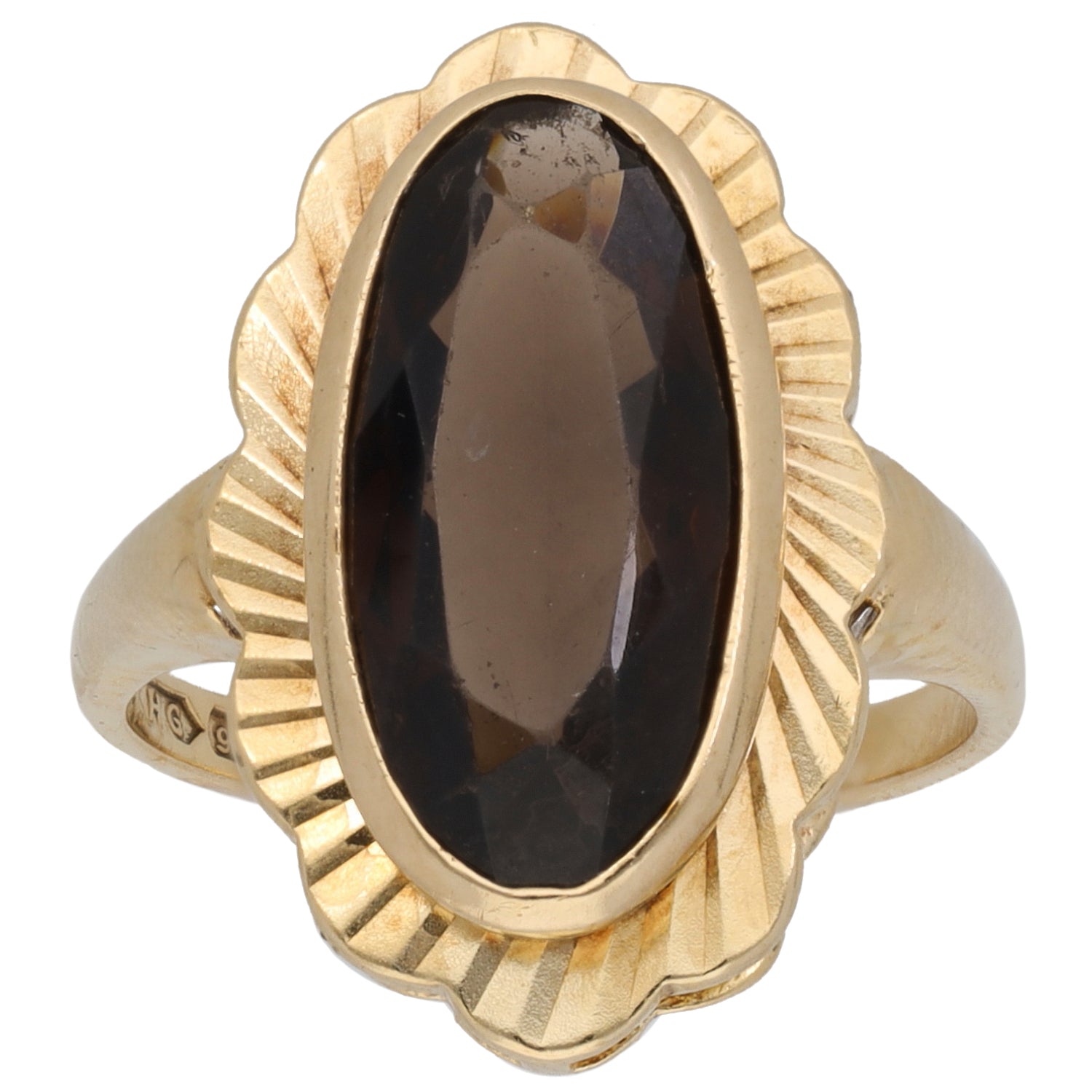 9ct Gold Smoky Quartz Single Stone Ring Size K