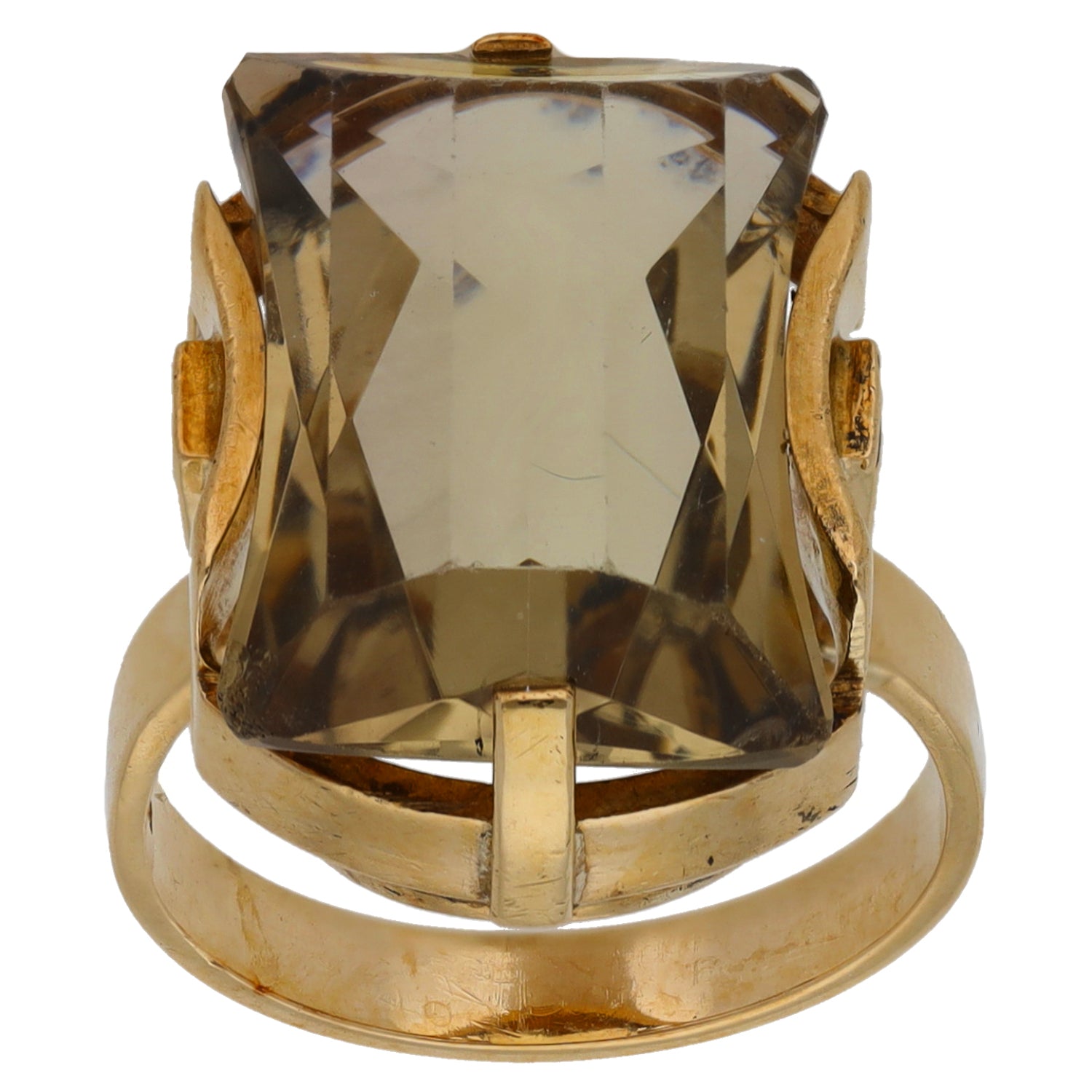 9ct Gold Smoky Quartz Single Stone Ring Size L