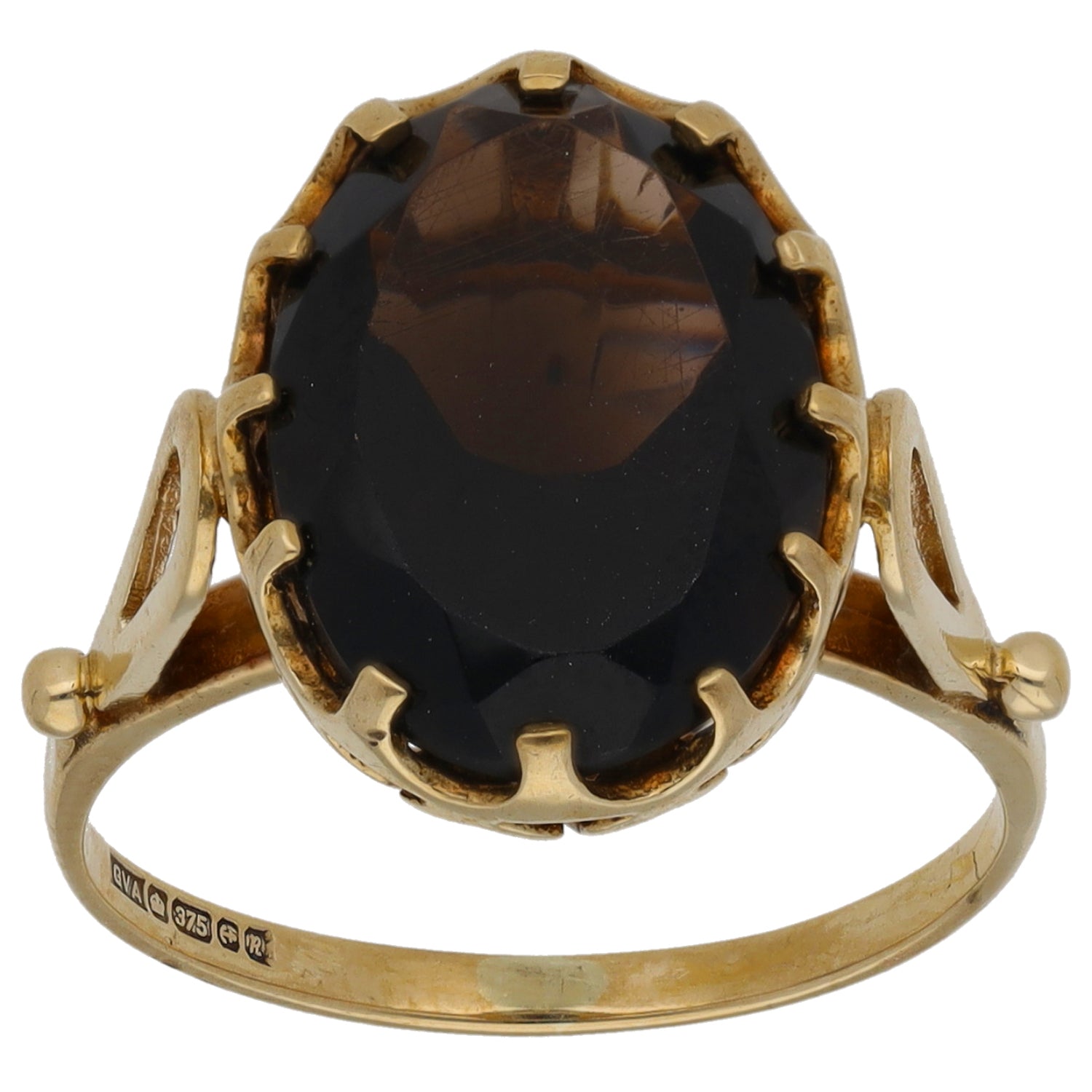 9ct Gold Smoky Quartz Single Stone Ring Size L