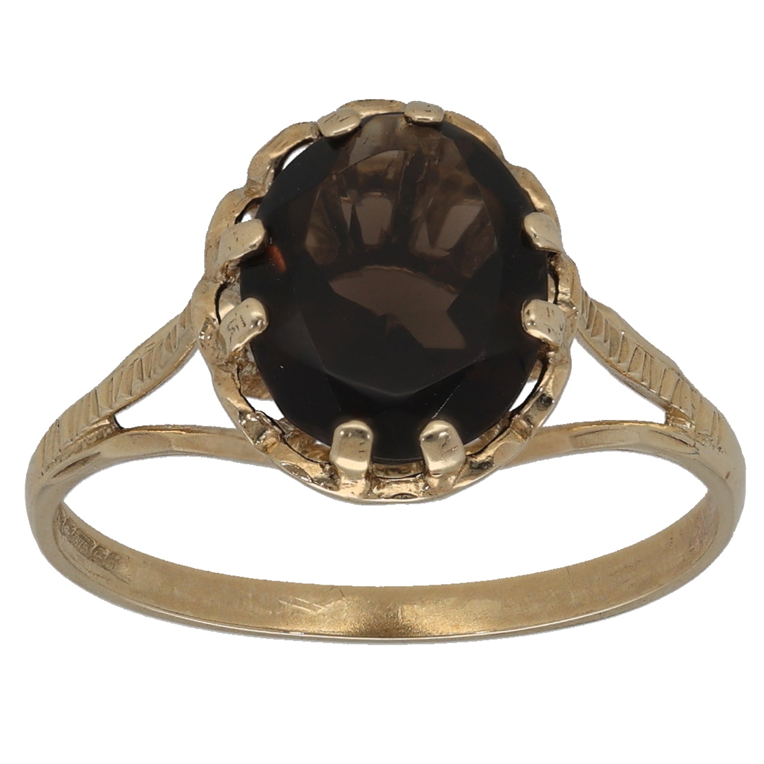 9ct Gold Smoky Quartz Single Stone Ring Size P