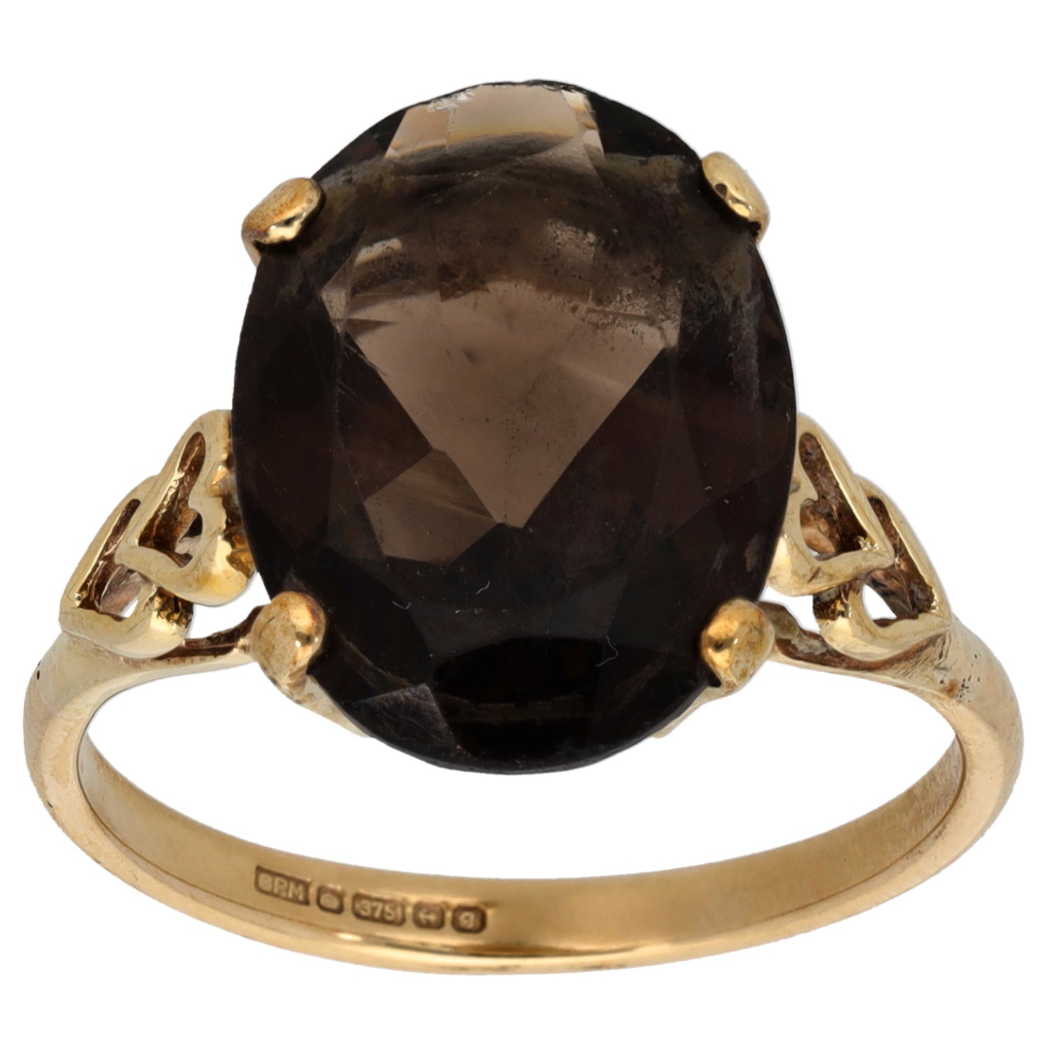 9ct Gold Smoky Quartz Single Stone Ring Size S
