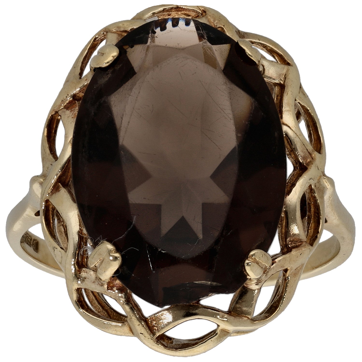 9ct Gold Smoky Quartz Single Stone Ring Size T