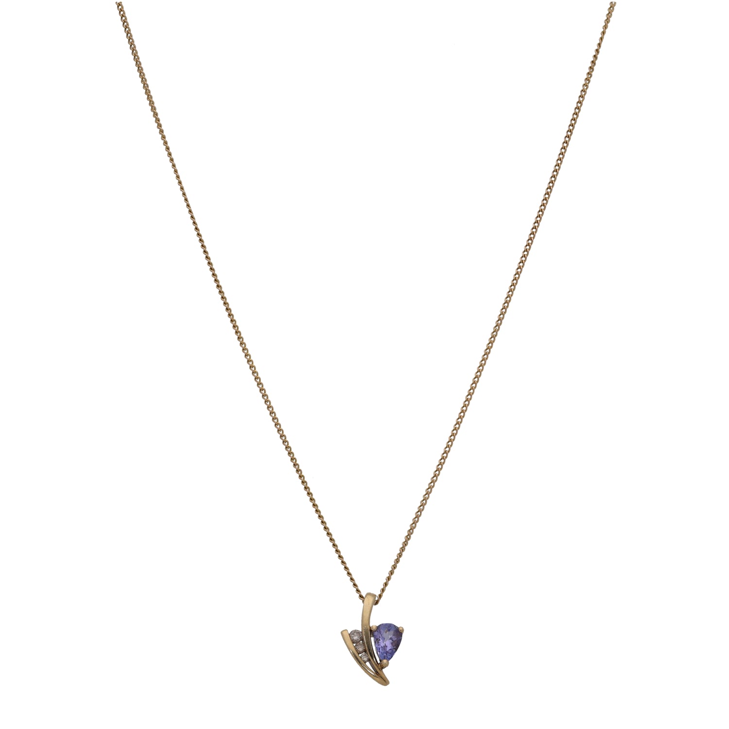 9ct Gold Tanzanite & 0.03ct Diamond Dress/Cocktail Pendant With Chain
