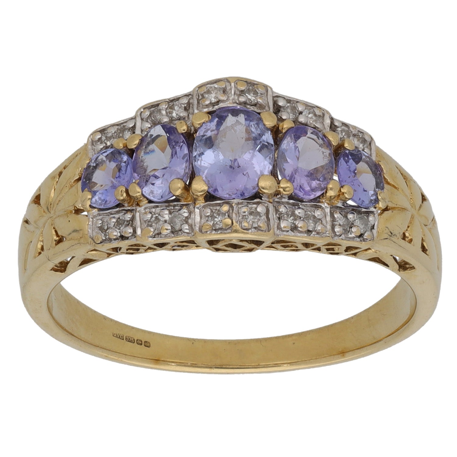9ct Gold Tanzanite & 0.10ct Diamond Dress/Cocktail Ring Size P