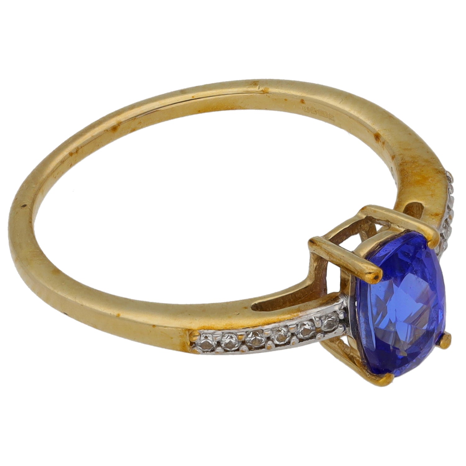 9ct Gold Tanzanite & Cubic Zirconia Single Stone Ring with Accent Stones Size N