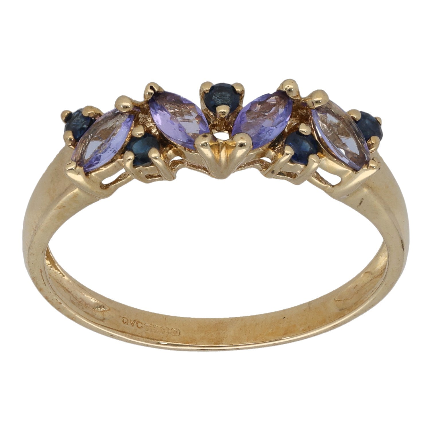 9ct Gold Tanzanite & Sapphire Dress/Cocktail Ring Size S