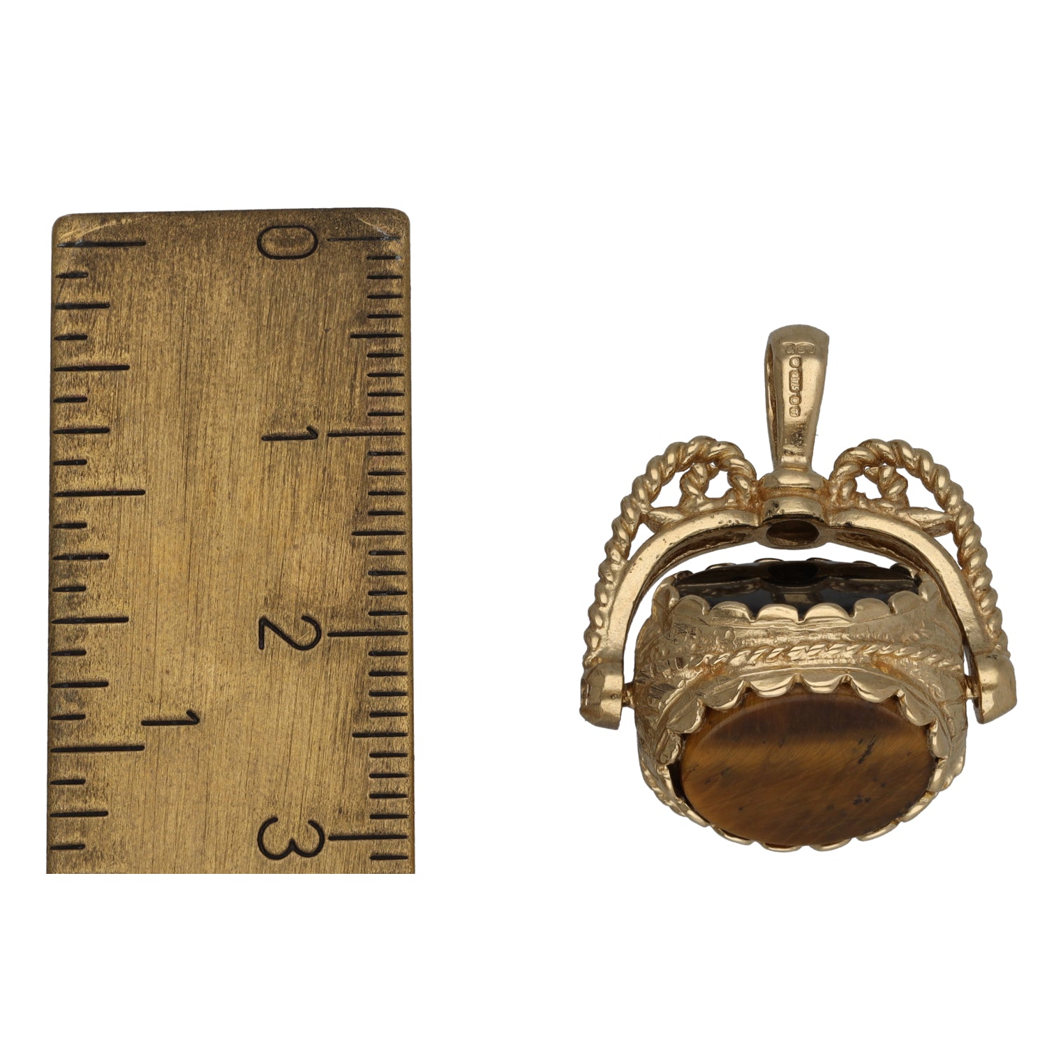 9ct Gold Tiger's Eye & Carnelian & Onyx Fob Pendant