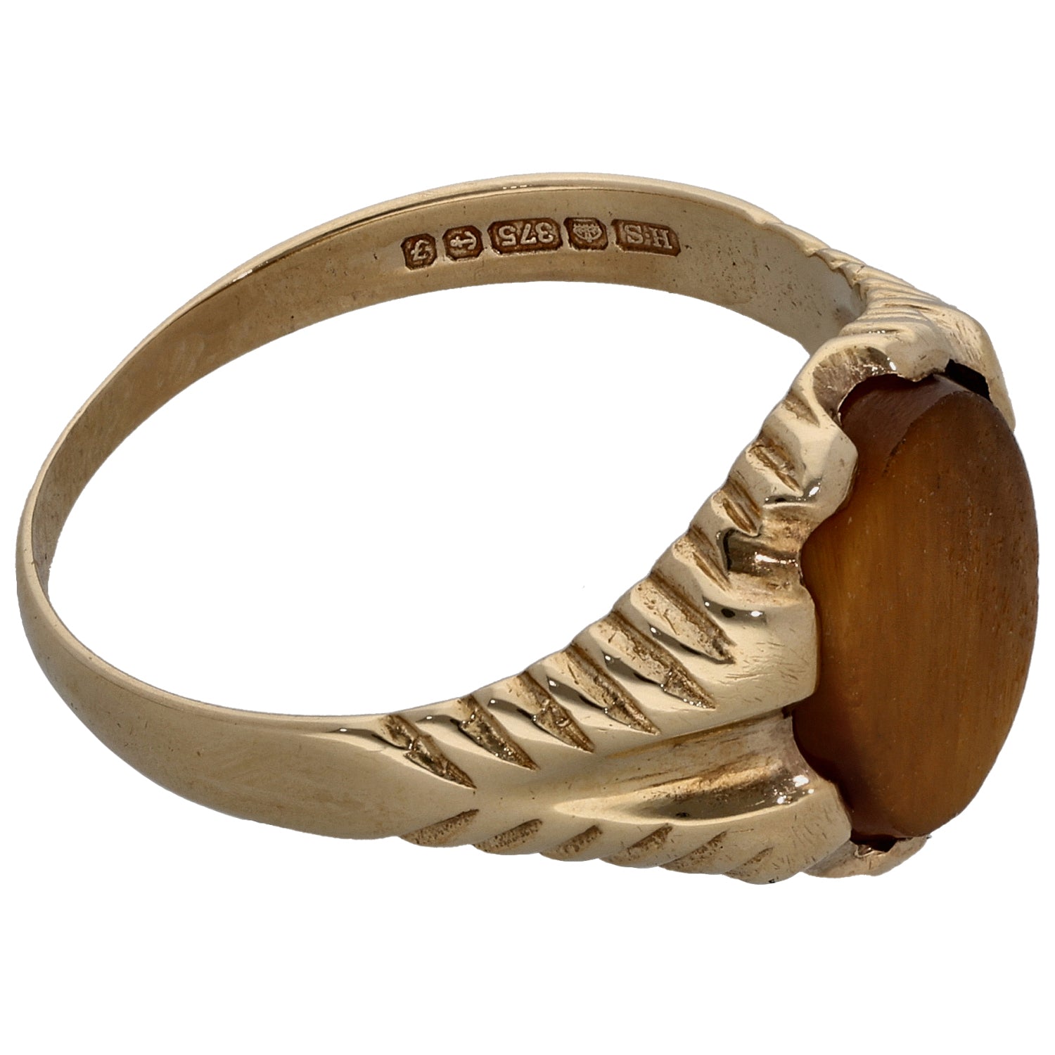 9ct Gold Tiger's Eye Patterned Single Stone Signet Ring Size V