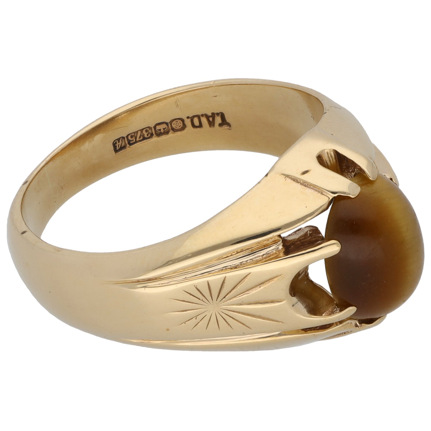 9ct Gold Tiger's Eye Single Stone Ring Size T