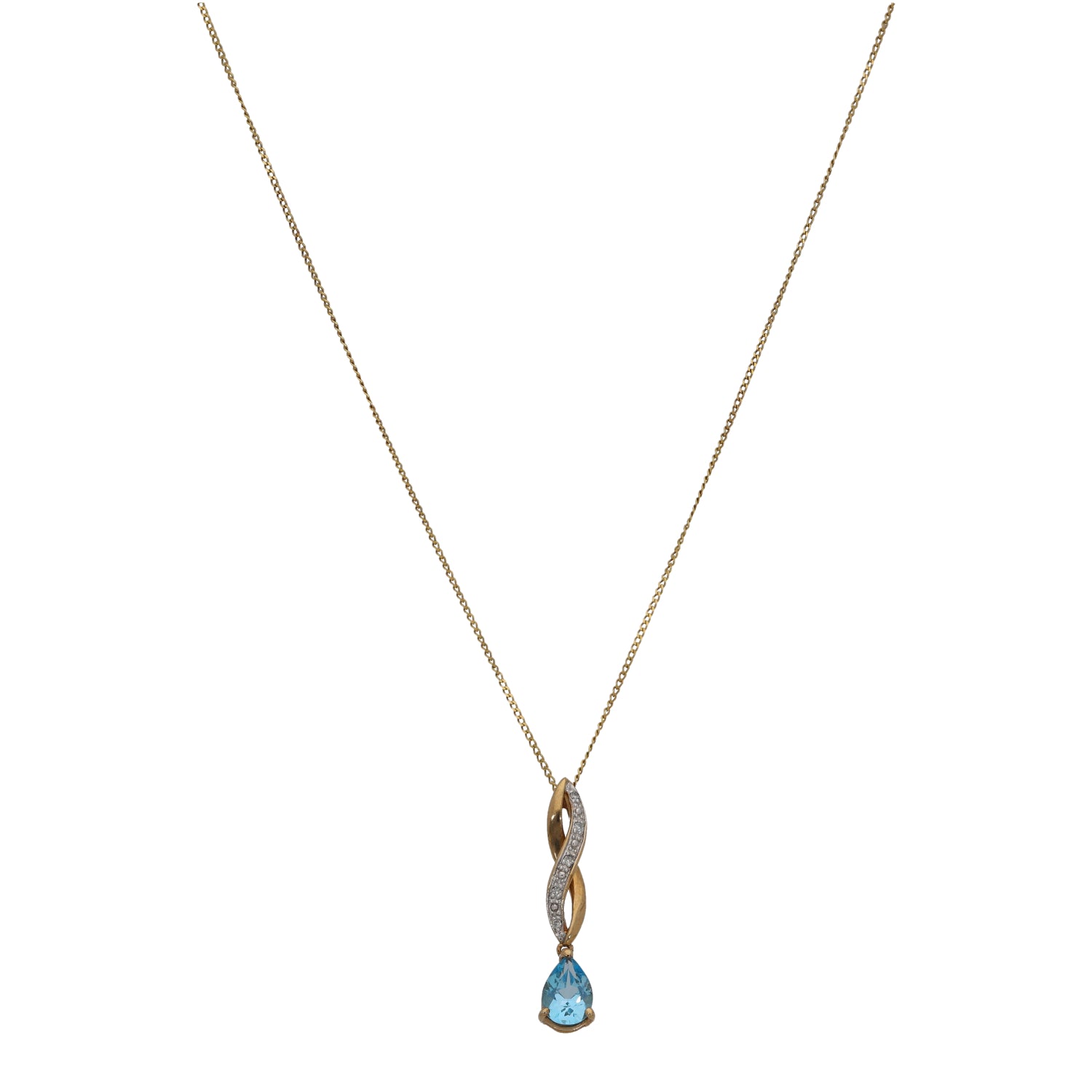 9ct Gold Topaz & 0.025ct Diamond Dress/Cocktail Pendant With Chain