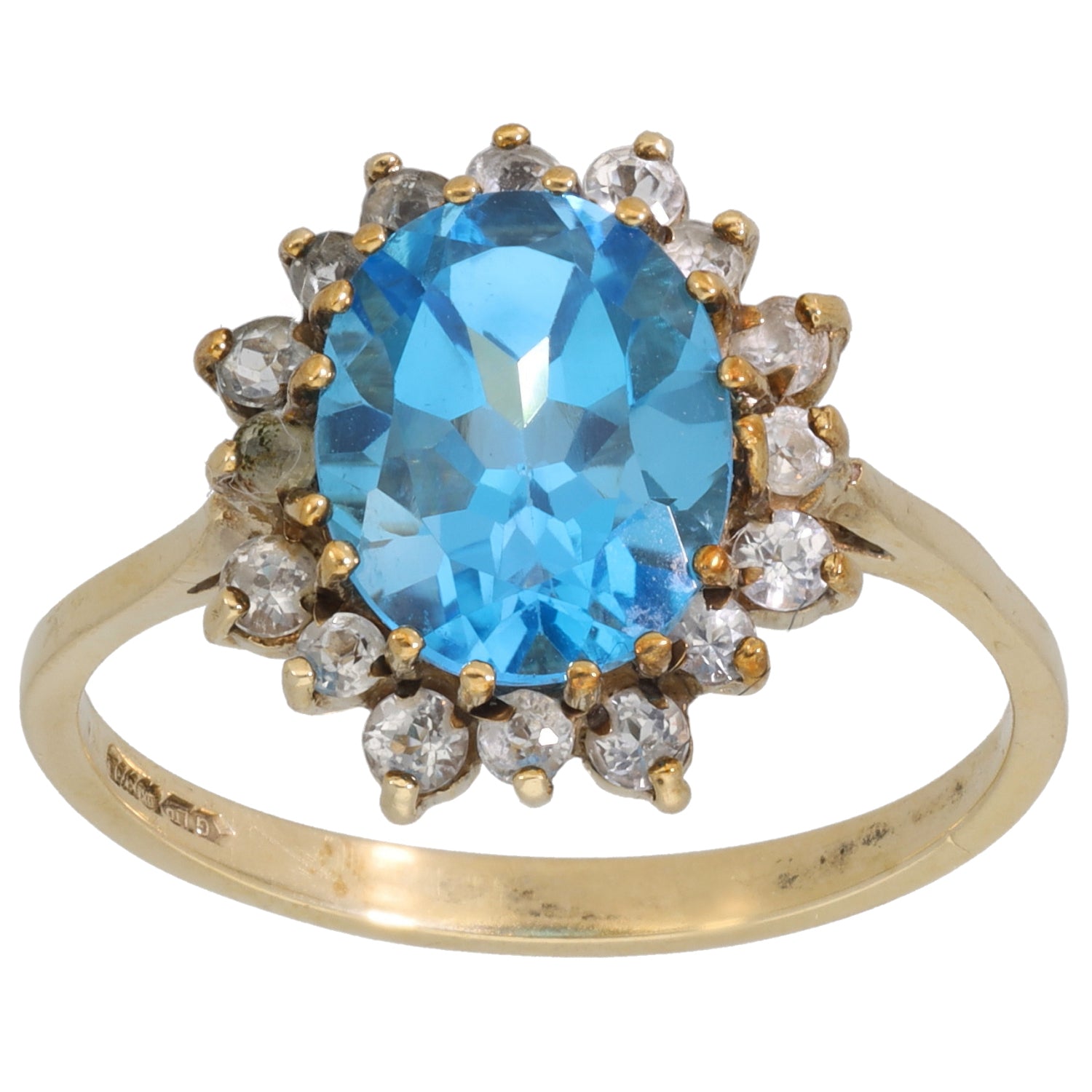 9ct Gold Topaz & White Topaz Cluster Ring Size R