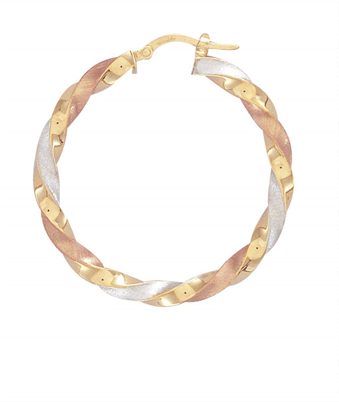 New 9ct Tri-Colour Gold Twist Hoop Earrings