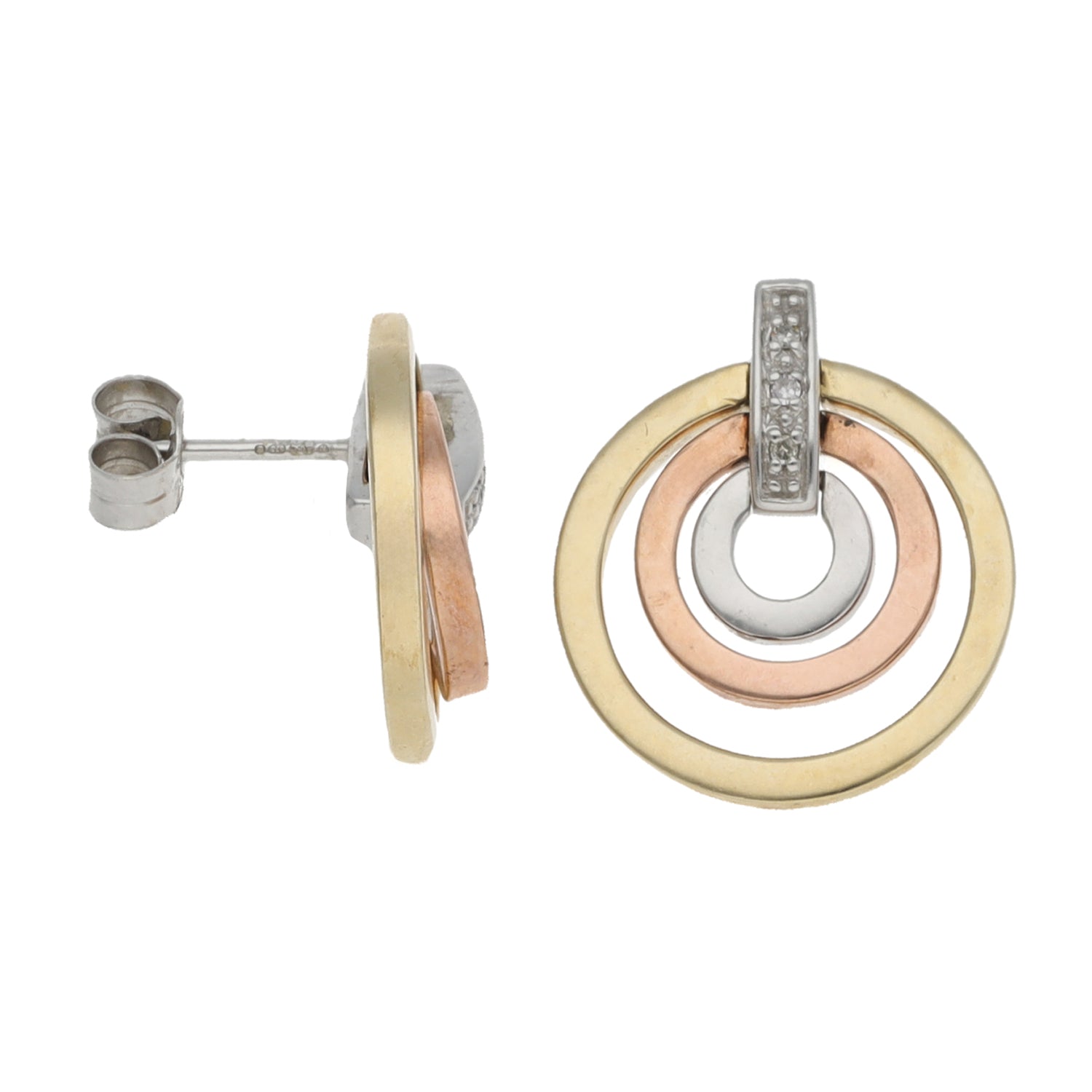 9ct Tri-Colour Gold 0.03ct Diamond Dress/Cocktail Earrings