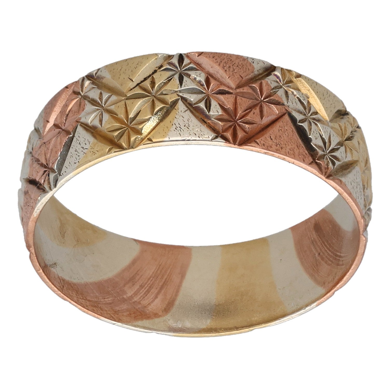 9ct Tricolour Gold Patterned Wedding Ring Size M