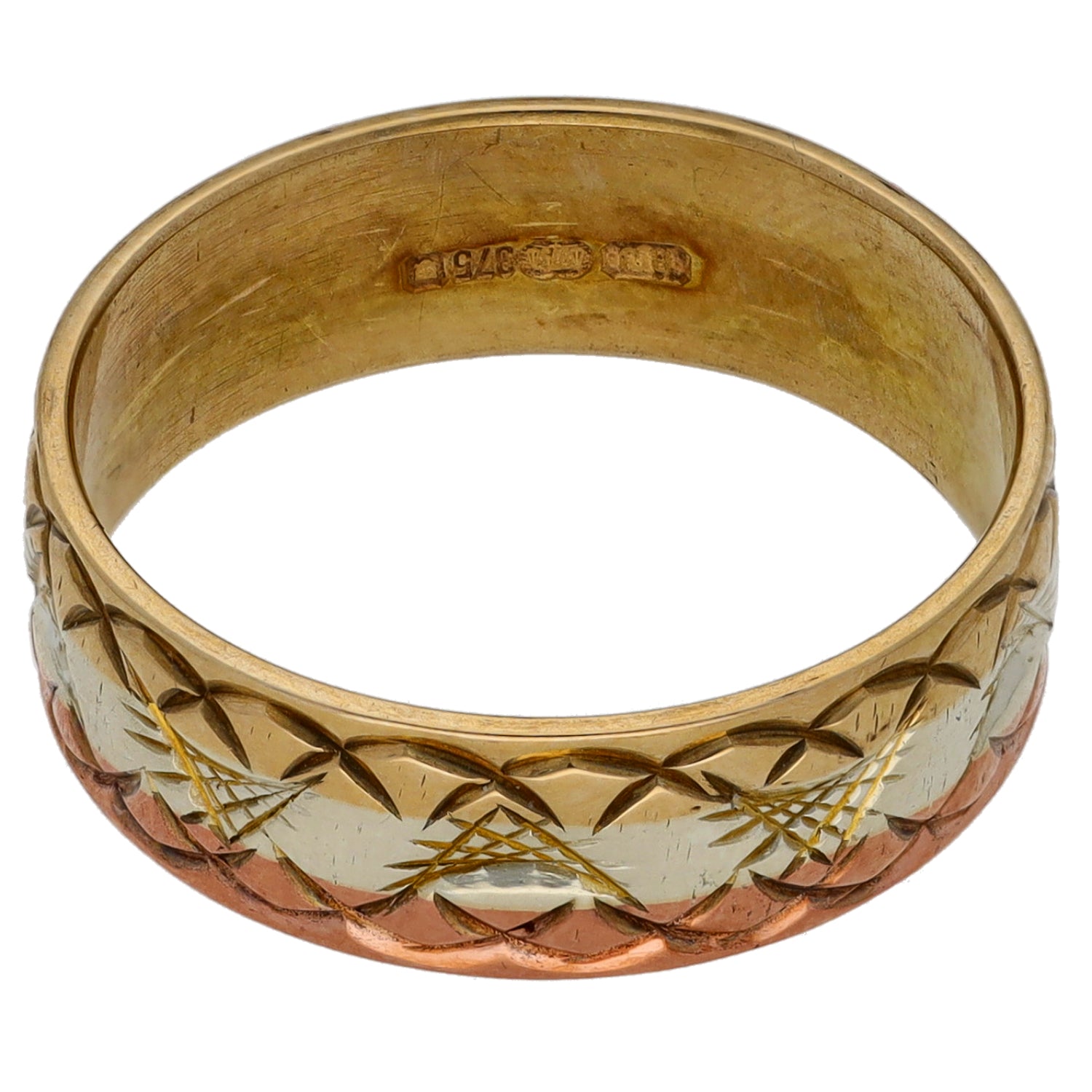 9ct Tri-Colour Gold Patterned Wedding Ring Size N