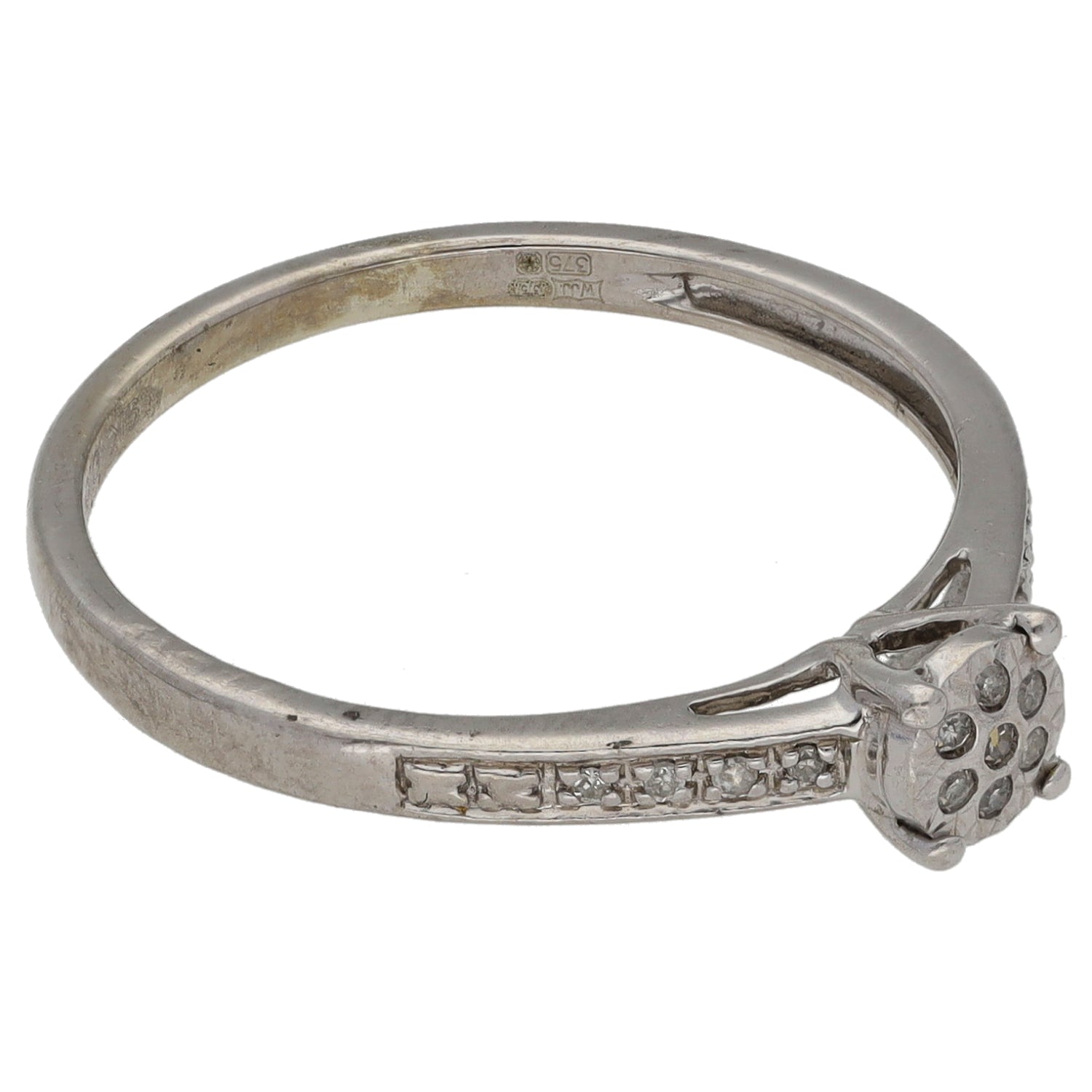 9ct White Gold 0.05ct Diamond Cluster Ring Size O