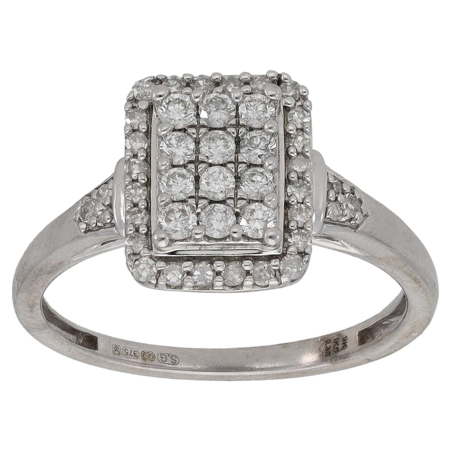 9ct White Gold 0.38ct Diamond Cluster Ring Size L