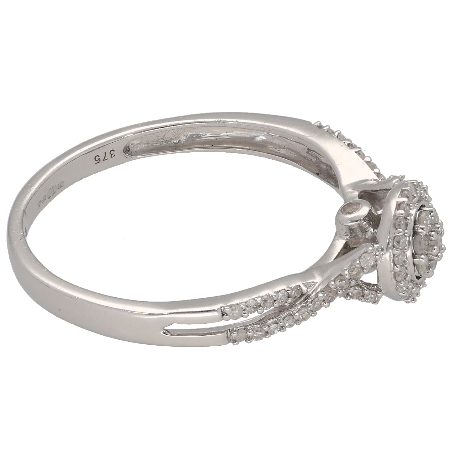 9ct White Gold 0.20ct Diamond Dress/Cocktail Ring Size P