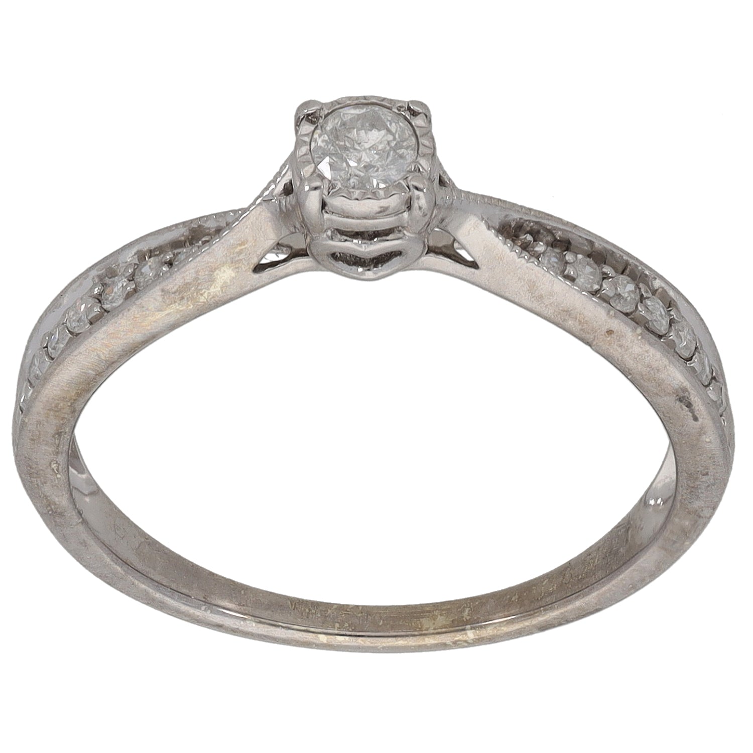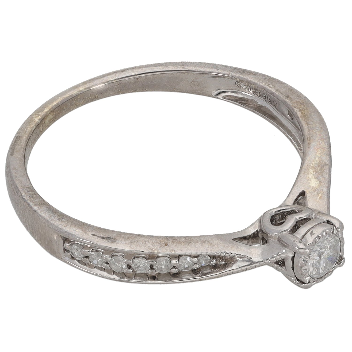 9ct White Gold 0.20ct Diamond Solitaire Ring With Accent Stones Size O