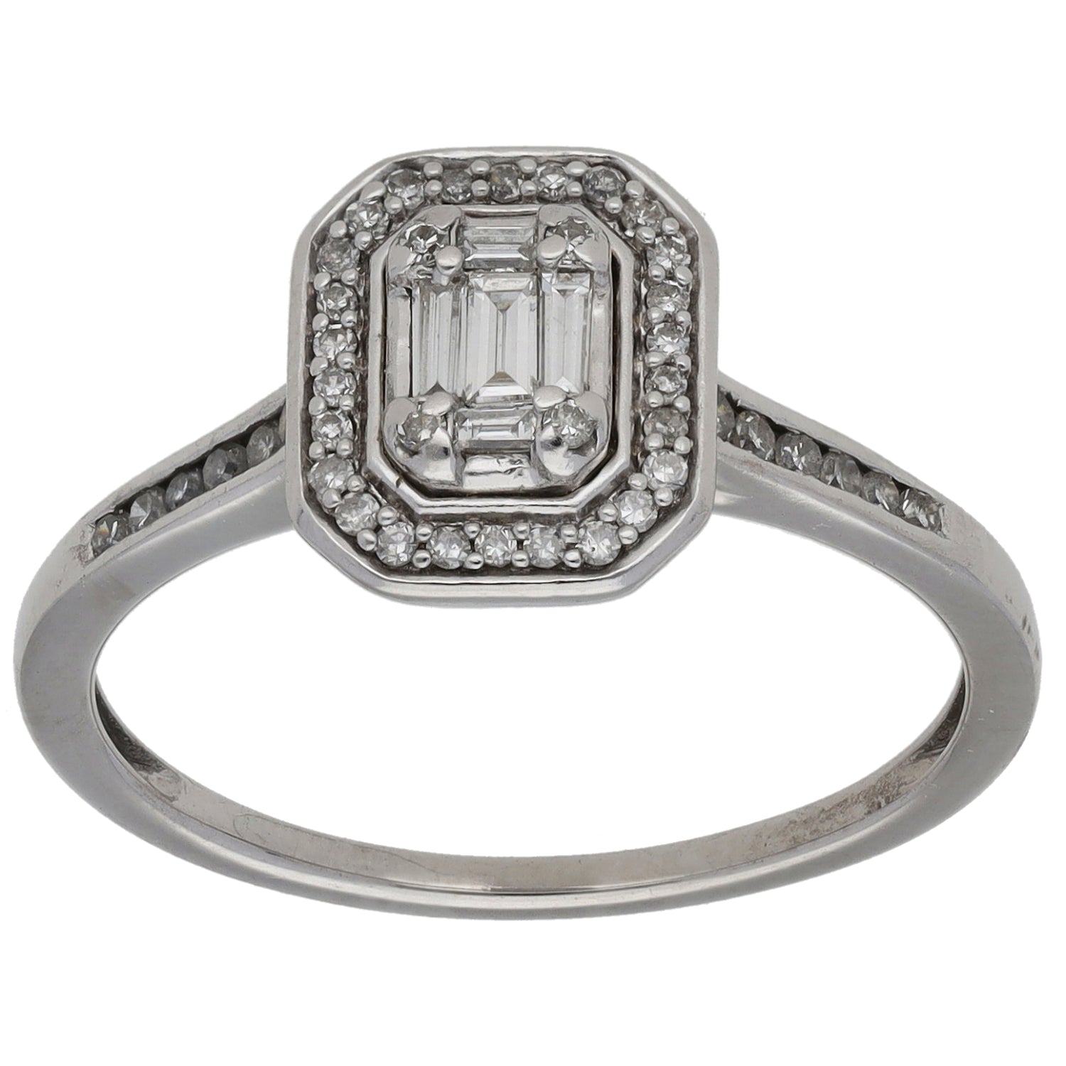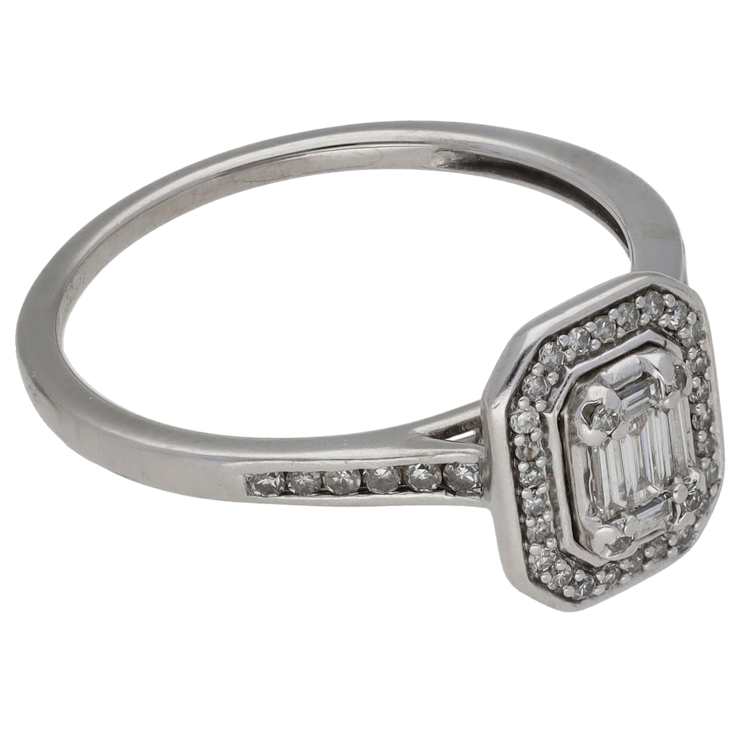 9ct White Gold 0.42ct Diamond Halo Ring Size P